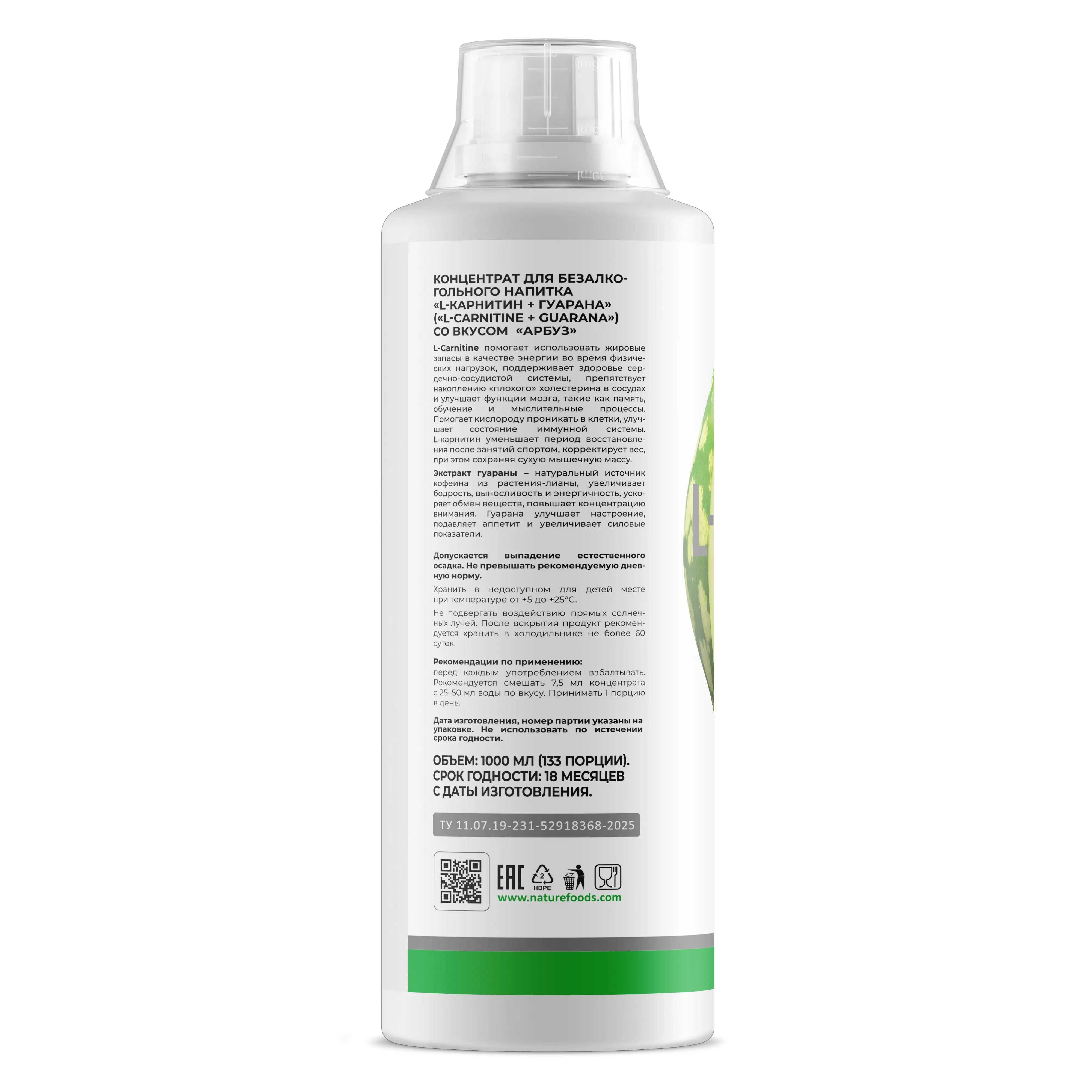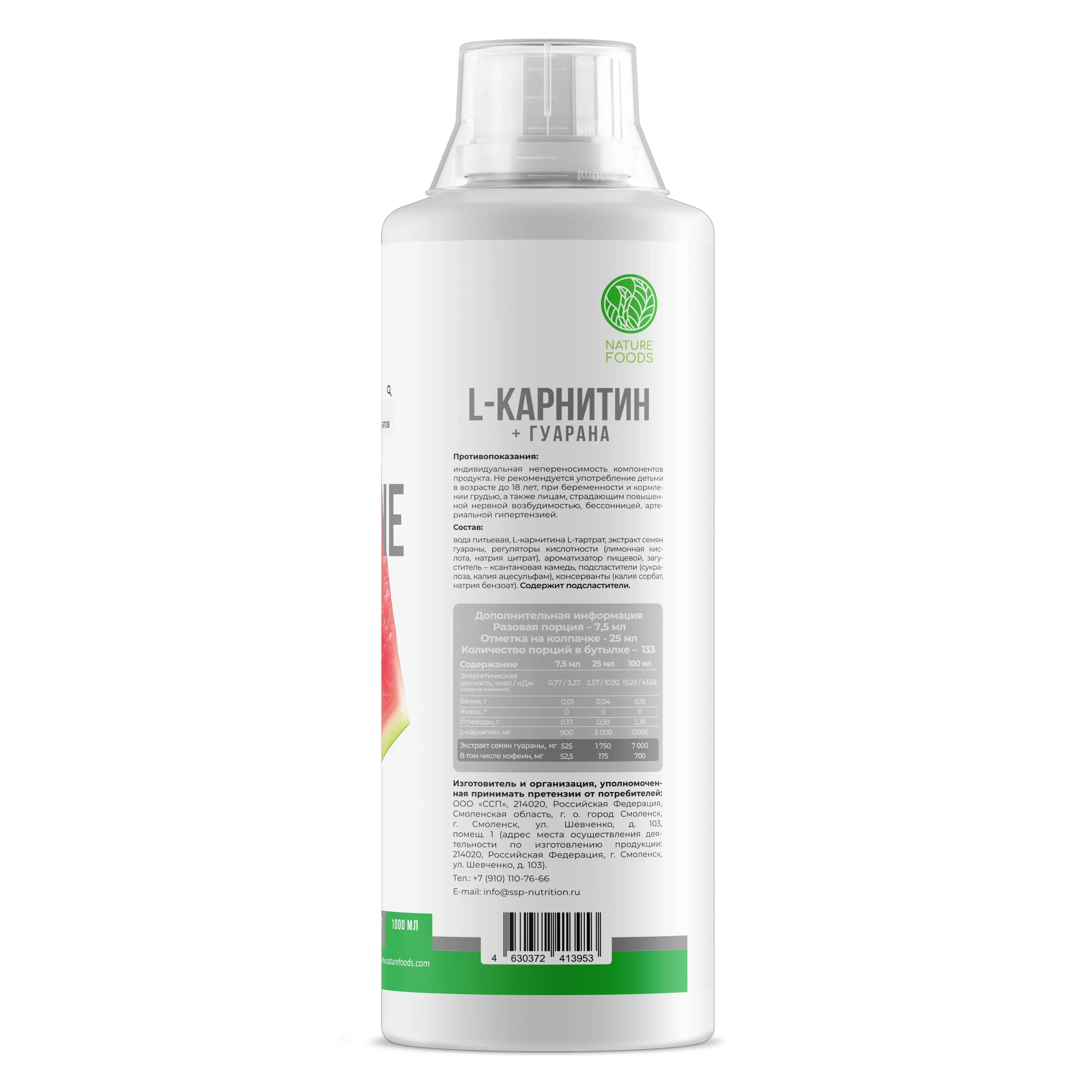 Nature Foods L-carnitine + Guarana concentrate – это комплексная добавка, содержащая л-карнитин и экстракт гуараны, направленная, прежде всего, на снижение подкожного жира.
