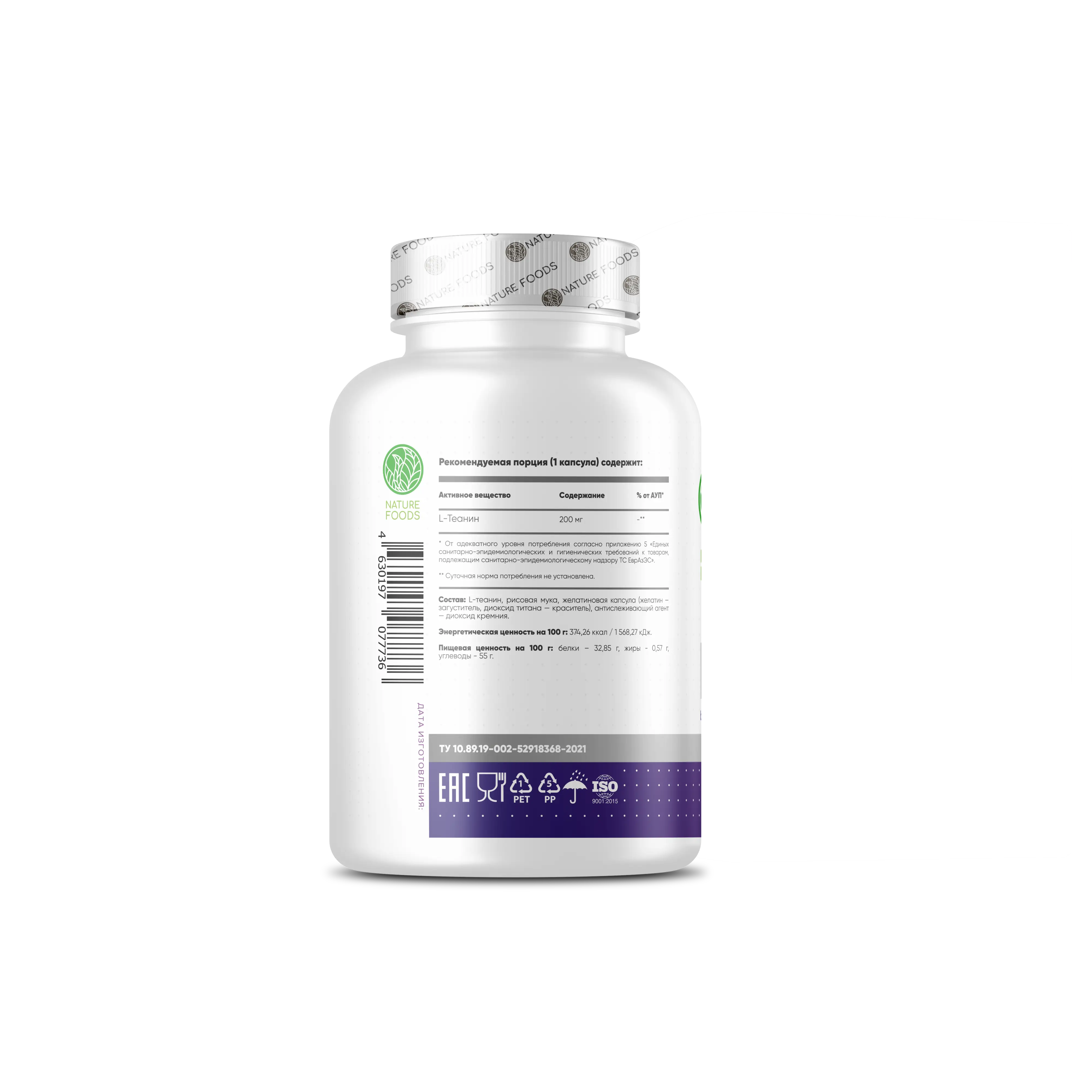 Состав: |-теанин, рисовая мука, желатиновая капсула (желатин — загуститель, диоксид титана — краситель), антислеживающий агент — диоксид кремния.