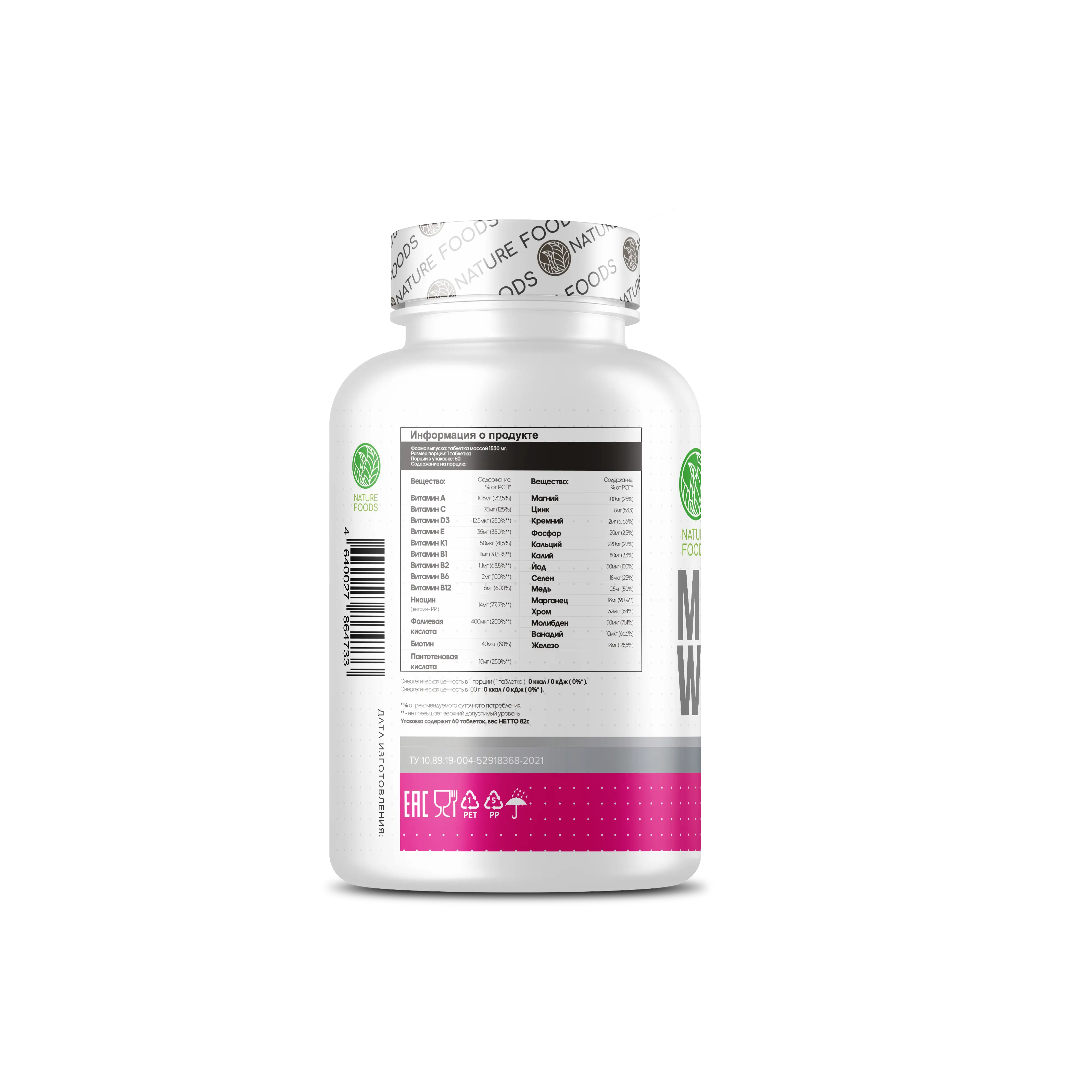 Nature Foods Multi WoMen – это витаминно-минеральный комплекс для улучшения состояния женского здоровья. Имеет невысокие концентрации компонентов, поэтому может быть использован не только спортсменами, но и людьми ведущих малоподвижный образ жизни.