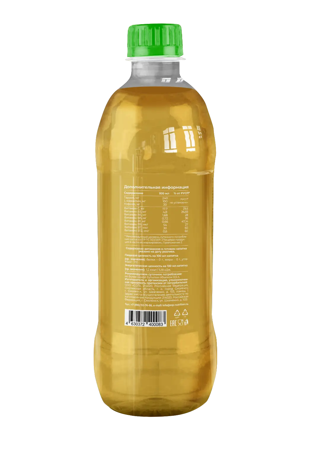 - Удобный формат: Компактная бутылка объемом 500 мл идеально подходит для тренировок, работы или активного отдыха.