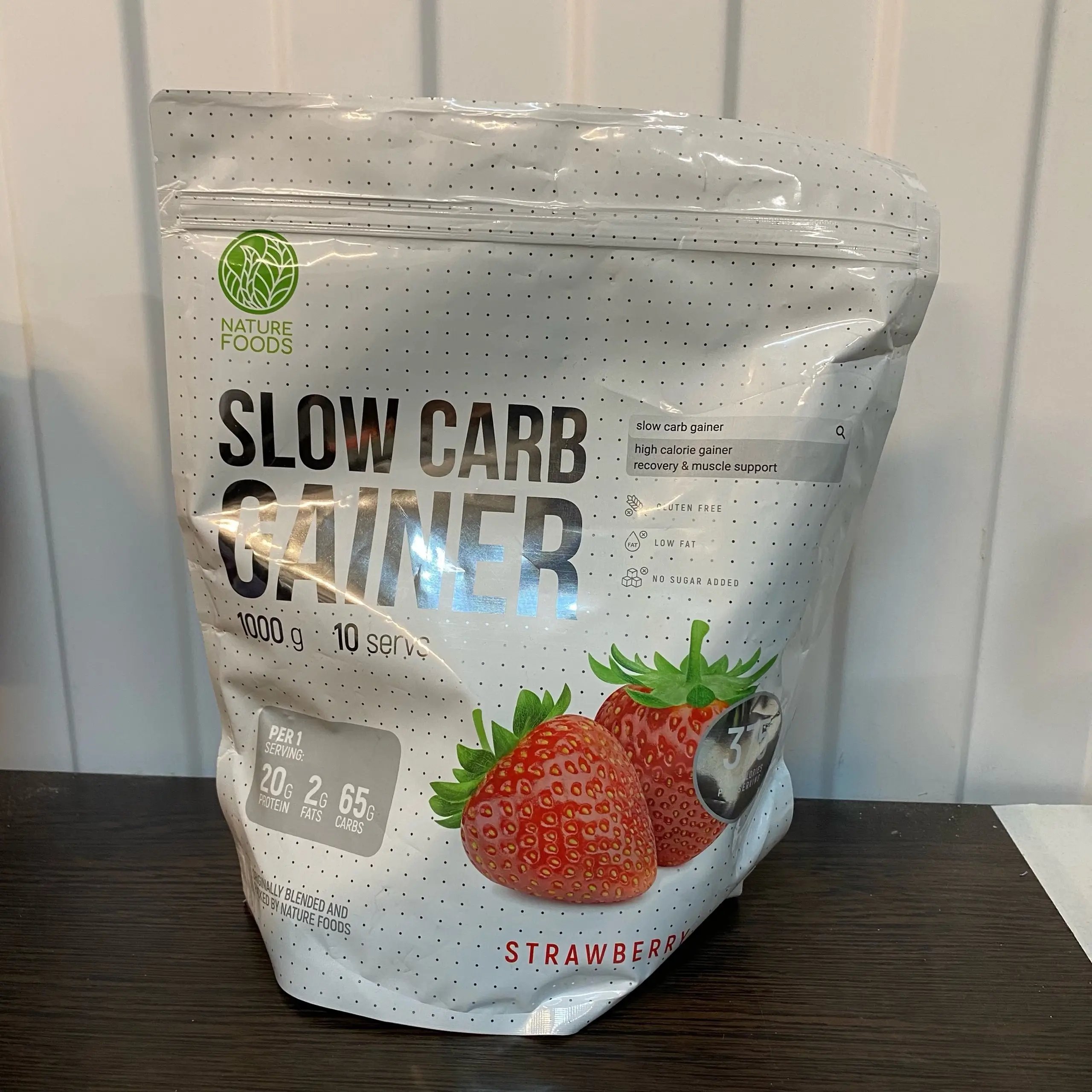 NATURE FOODS Slow Carb Gainer 1000g (Клубника) (заклеена дырка, 02/25)