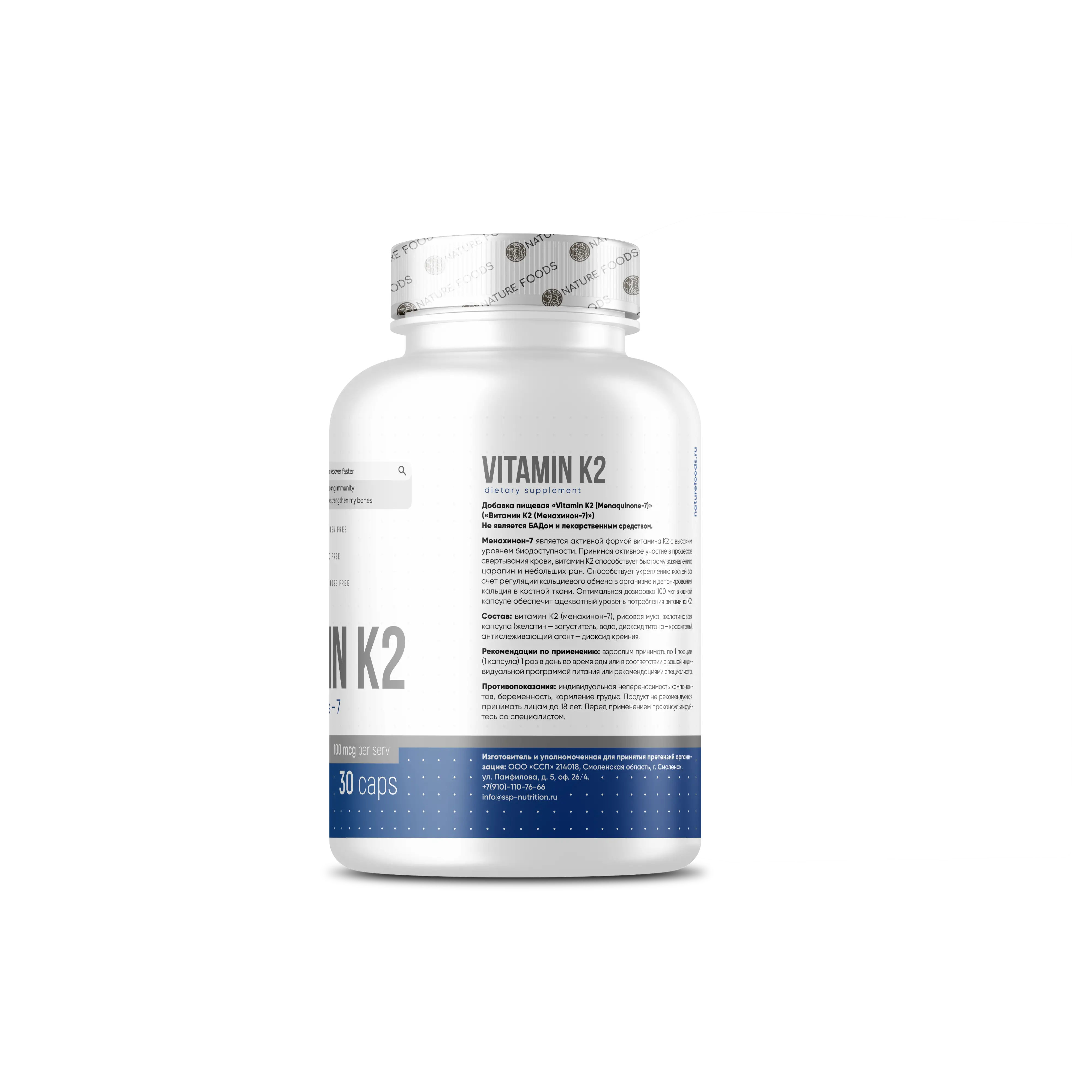 Менахинон-7 является активной формой витамина К2 с высоким уровнем биодоступности. Принимая активное участие в процессе свертывания крови, витамин К2 способствует быстрому заживлению царапин и небольших ран. Способствует укреплению костей за счет регуляции кальциевого обмена в организме и депонировония кальция в костной ткани. Оптимальная дозировка 100 мкг в одной капсуле обеспечит адекватный уровень потребления витанина К2.