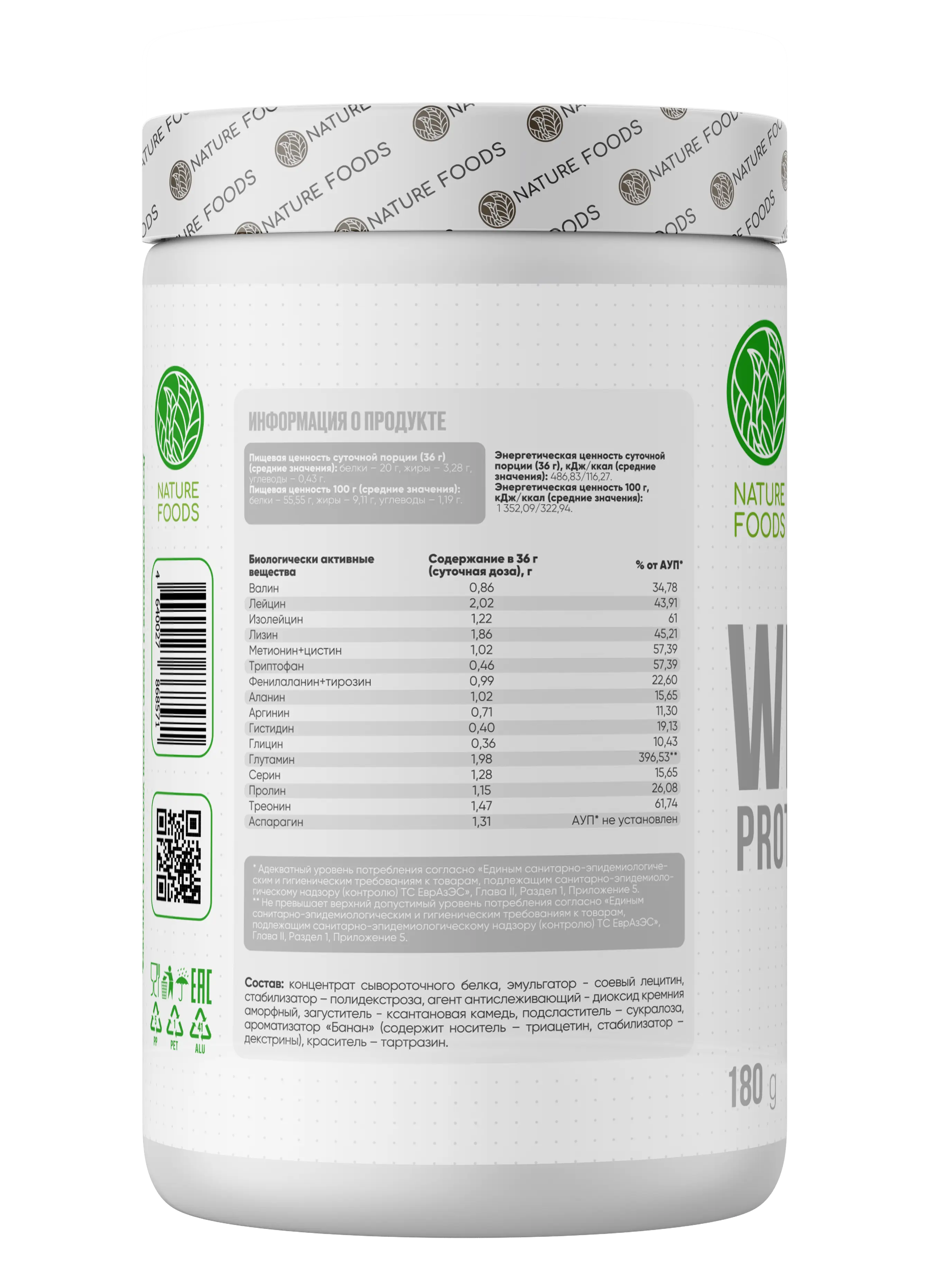 Nature Foods Whey – это сывороточный протеин, включающий в свой состав сывороточный концентрат. Сывороточный протеин содержит наиболее оптимальный аминокислотный профиль, который идеально подходит для организма человека. Большое количество незаменимых аминокислот в составе создаст наилучшие условия восстановления после тяжелой тренировки.