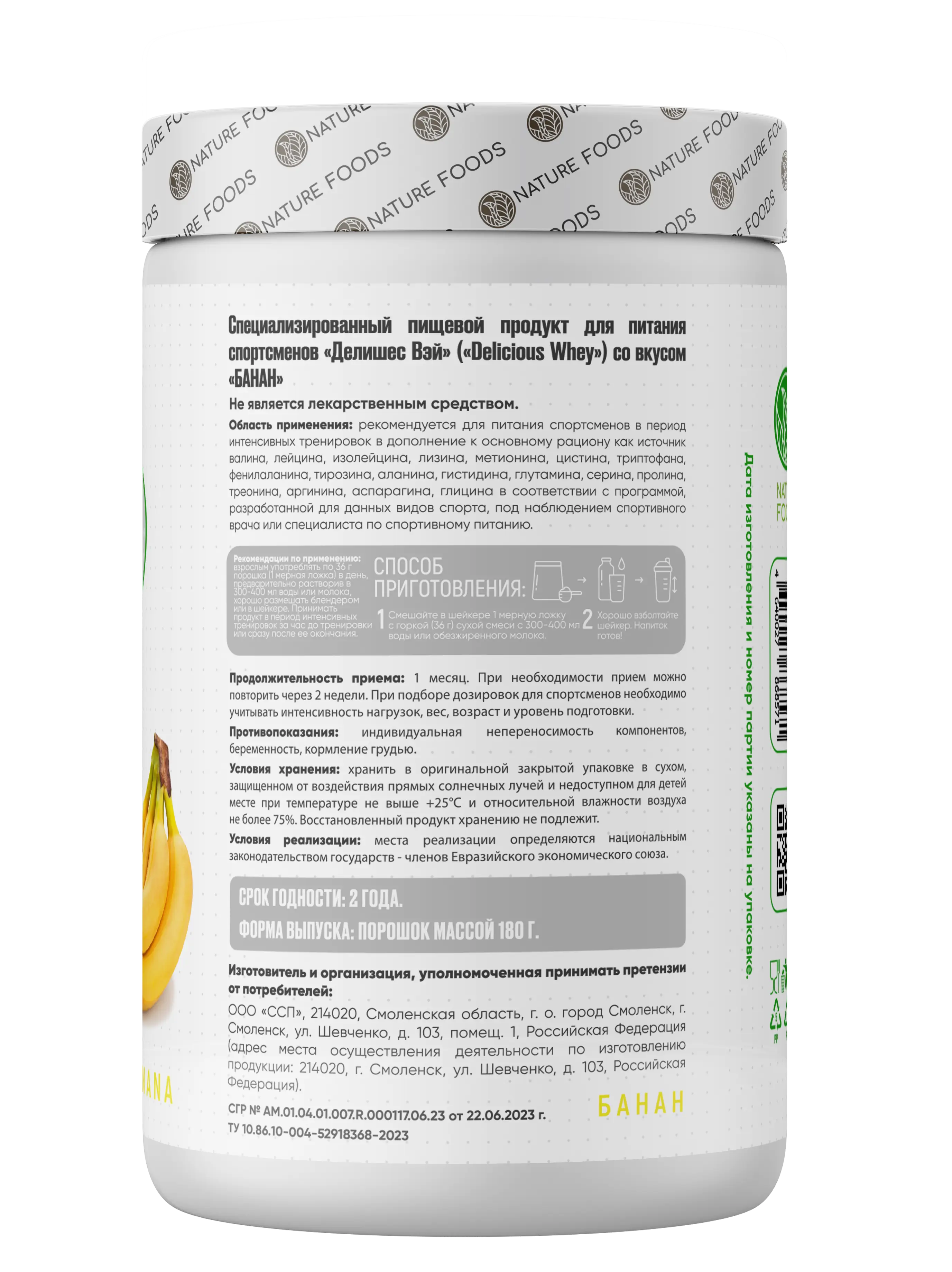 Nature Foods Whey не содержит в своем составе сахарозы, а так же дополнительно обогащен макроэлементами и витаминами.