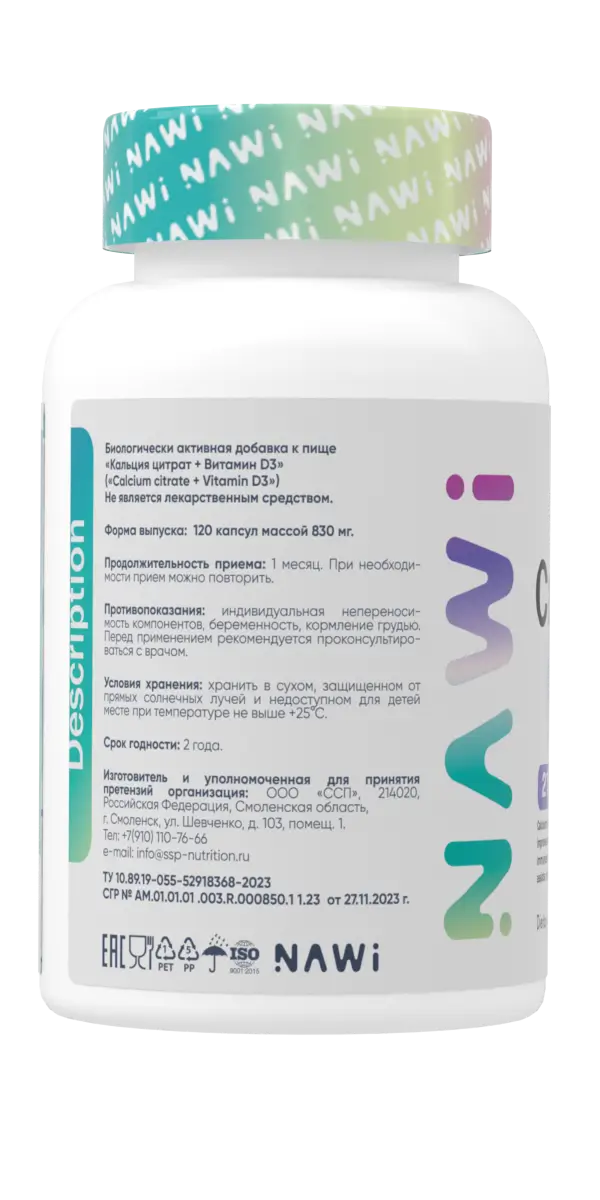NAWI Calcium Citrate 500 mg + Vitamin D3 120 caps
