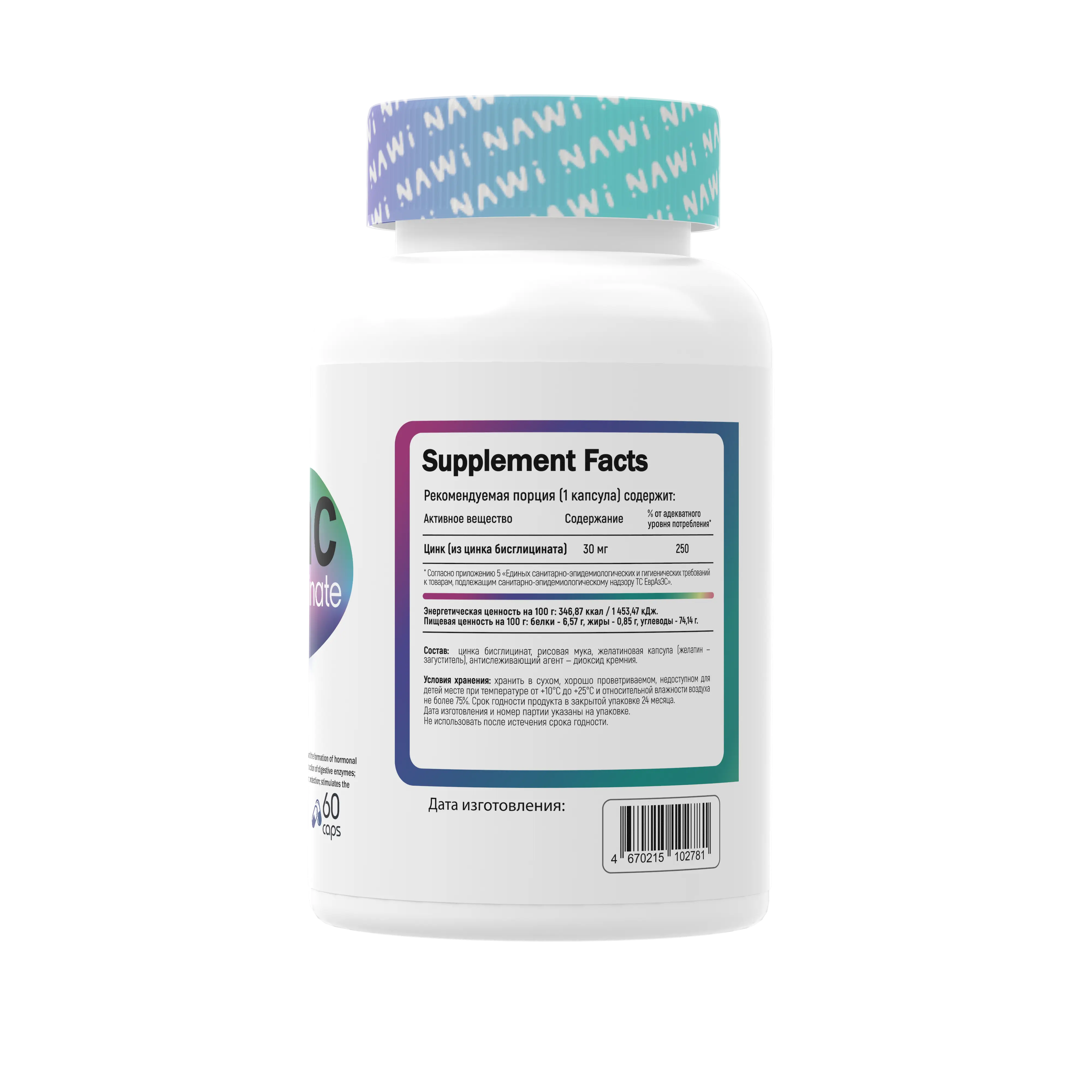 NAWI Zinc Glycinate + B6 30mg 60 caps