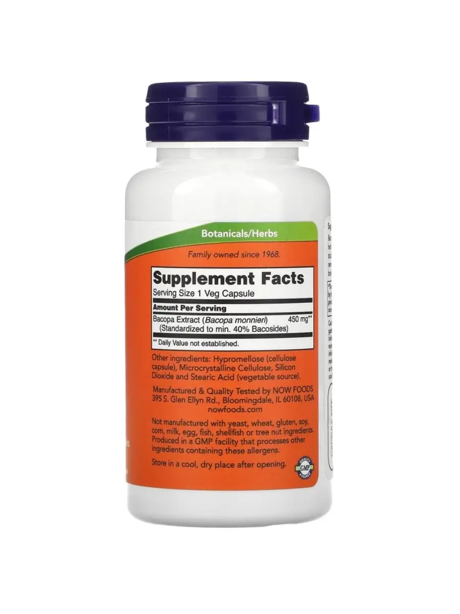 NOW Bacopa Extract 450 mg — это отличное решение для тех, кто хочет улучшить свою память, снизить уровень стресса и поддержать общее здоровье мозга.