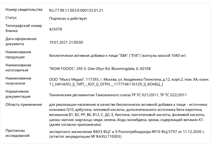 Витамины, Минералы, Масло примулы вечерней (Oenothera biennis), Концентрат из ягод клюквы (Vaccinium macrocarpon), Экстракт хвоща полевого (Equisetum arvense) (надземные части) (не менее 8% диоксида кремния), Альфа-липоевая кислота, Экстракт виноградных косточек (Vitis vinifera), Экстракт листьев зеленого чая (Camellia sinensis), Инозитол, Коэнзим Q10 (убихинон), Ликопин (LYC-O-MATO®) (из экстракта томатов), Лютеин (FloraGLO®) (из цветков бархатцев), Капсула [бычий желатин (без ГЭКРС), глицерин, вода, рожковое дерево], льняное масло, лецитин из сои и пчелиный воск. |