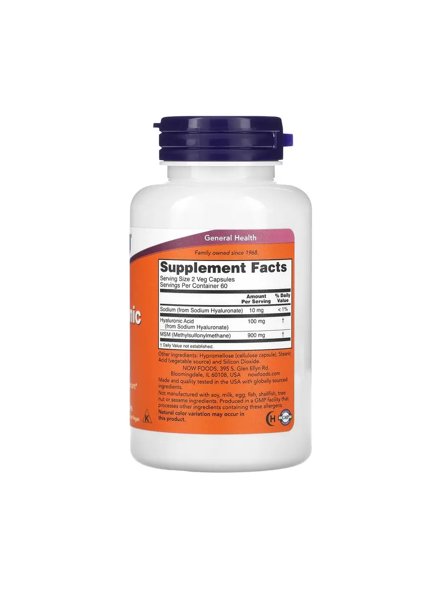 NOW Hyaluronic Acid с добавлением MSM – это мощная комбинация, направленная на поддержание здоровья суставов, кожи и соединительных тканей. Гиалуроновая кислота способствует увлажнению кожи и улучшает ее эластичность, а MSM (метилсульфонилметан) поддерживает здоровье суставов и снимает воспаление.