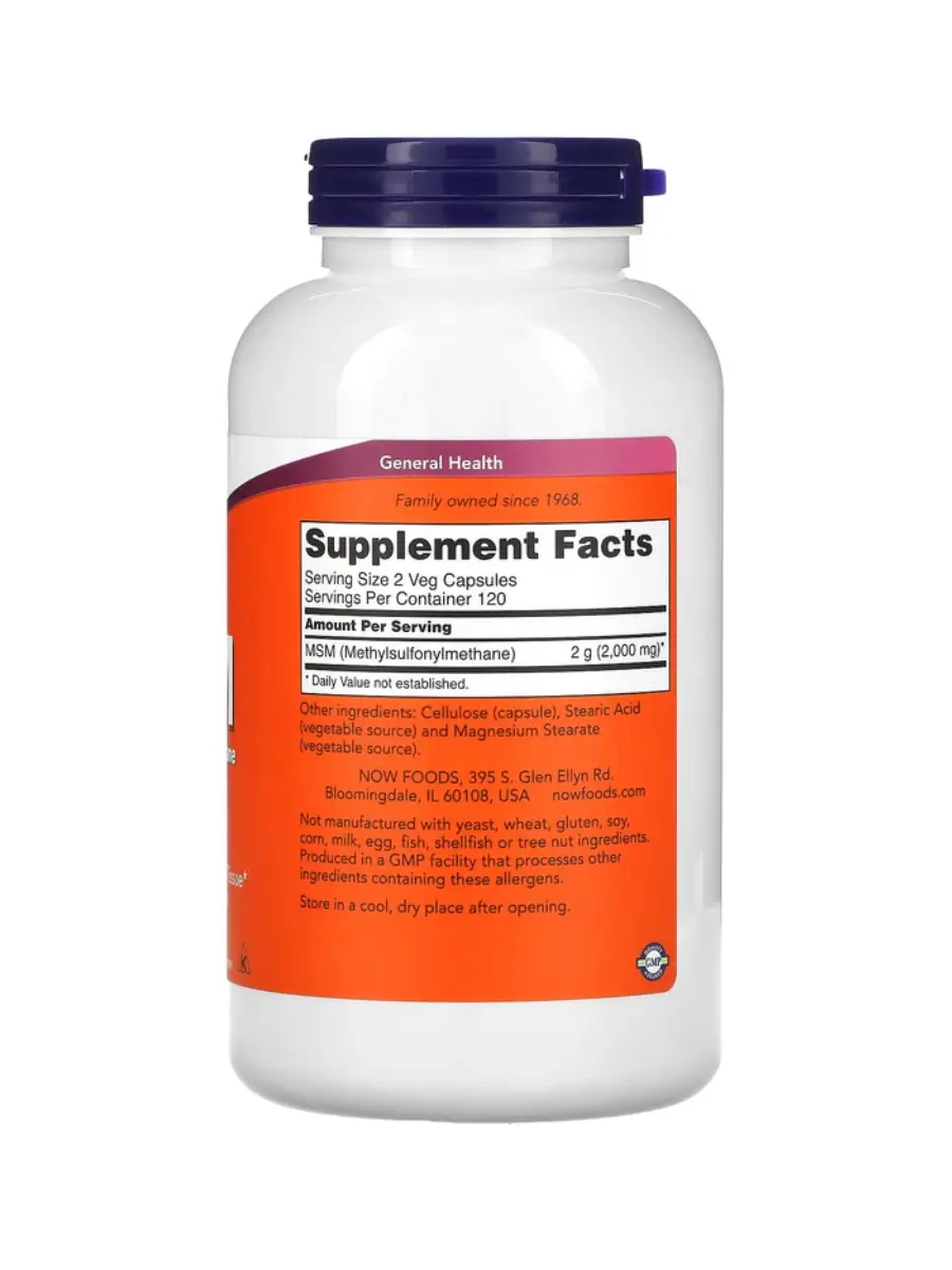 NOW MSM 1000 mg — идеальный выбор для тех, кто стремится поддержать здоровье суставов, улучшить состояние кожи и волос, а также снизить воспалительные процессы в организме.