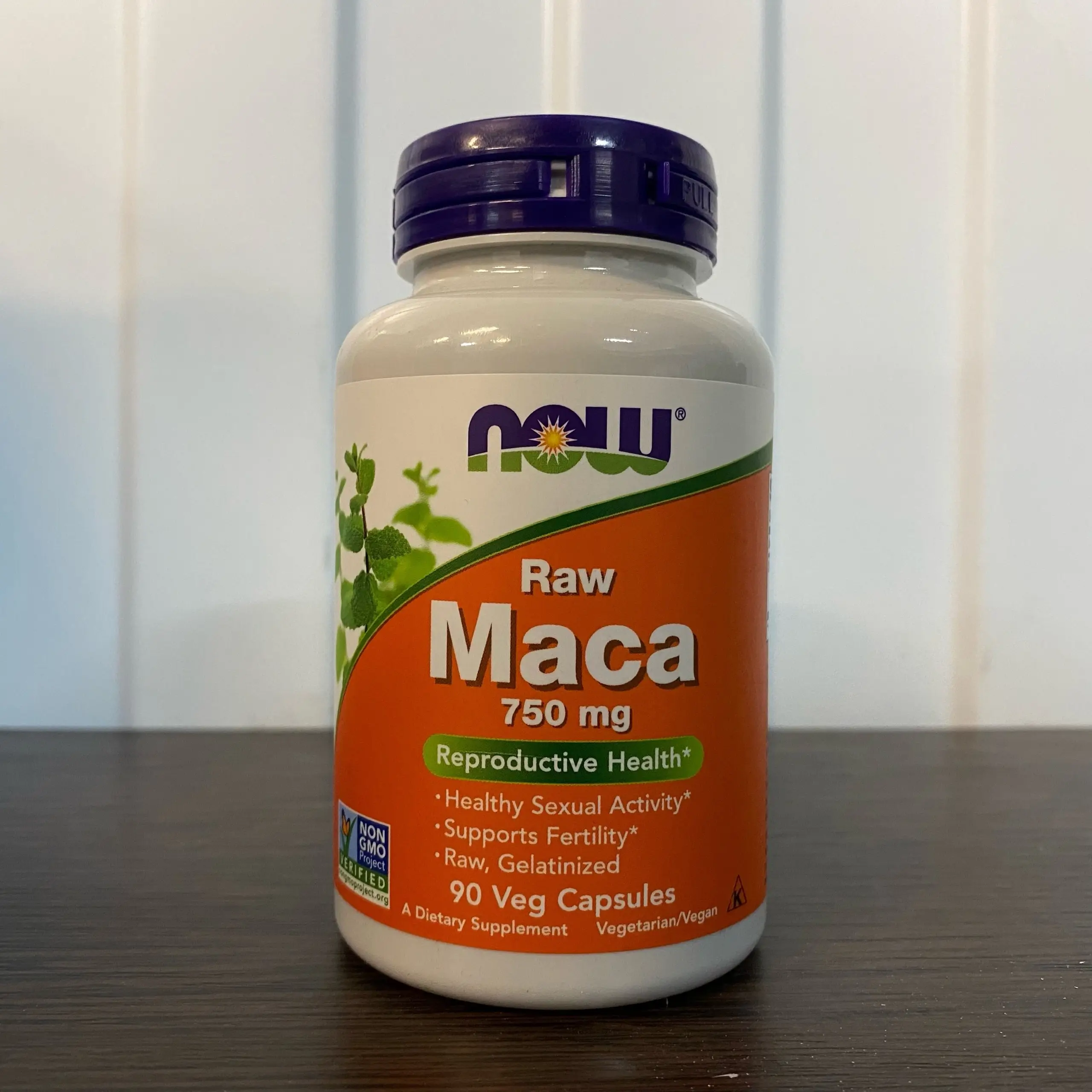 NOW Raw Maca 750mg 90 Vcaps (вмятины снизу, 01/28)
