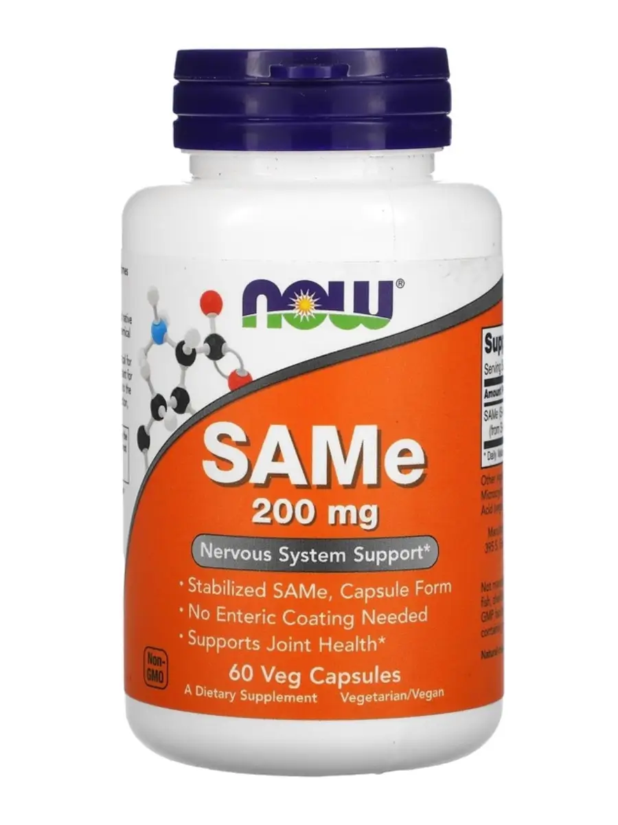 NOW SAMe 200 mg — это добавка, содержащая S-аденозилметионин (SAMe), соединение, которое естественным образом встречается в организме и поддерживает здоровье печени, настроение и общее состояние.