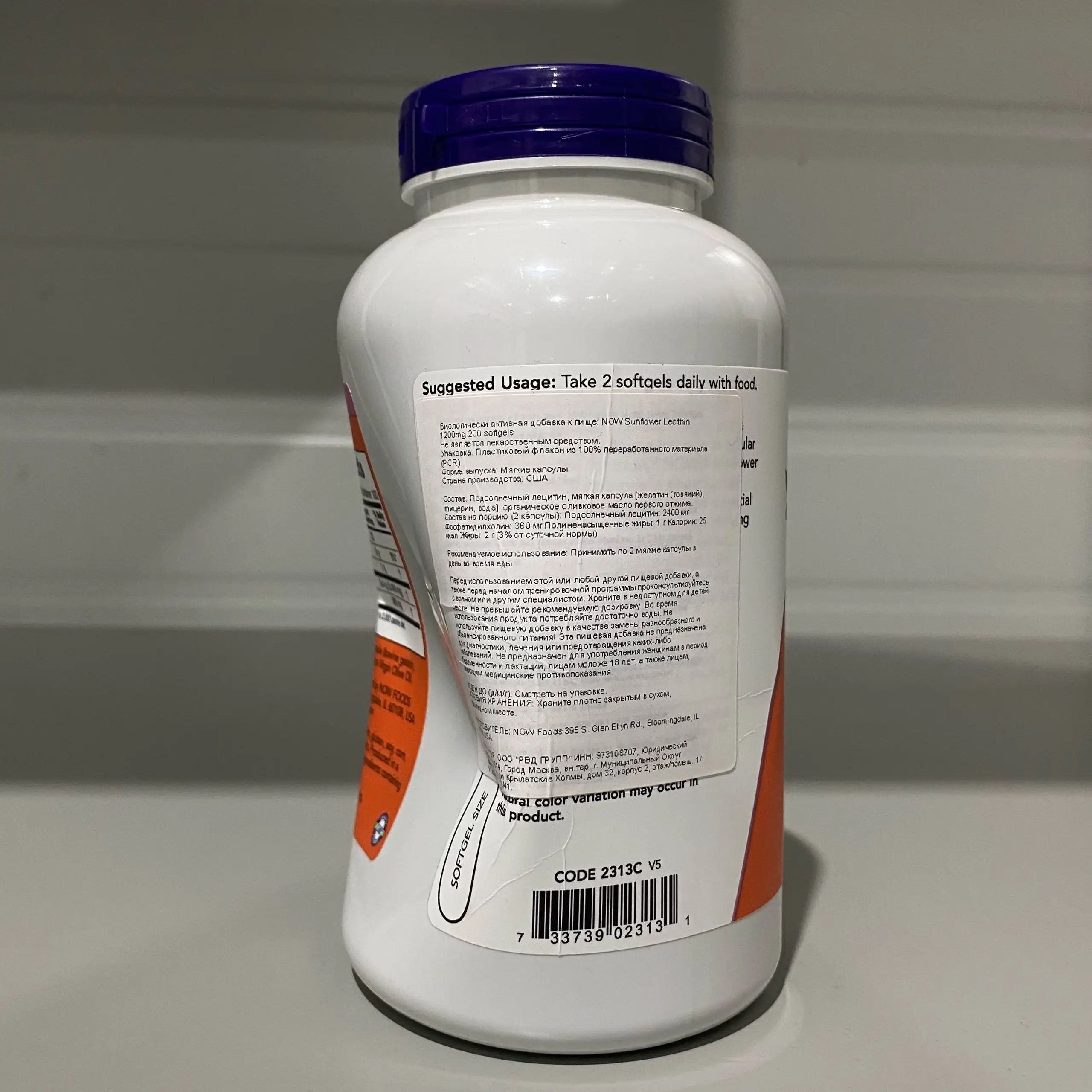 NOW Sunflower Lecithin 1200mg 200 Sgels (вмятина сбоку, 01/28)
