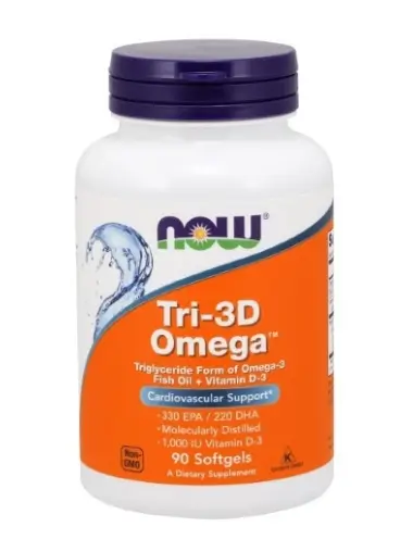 Tri-3D Omega - этот натуральный концентрат рыбьего жира производится в соответствии со строгими стандартами контроля качества. Он протестирован на отсутствие потенциально опасных загрязняющих веществ (например, ПХД, диоксинов, ртути и других тяжелых металлов). Предварительные, но еще не завершенные исследования показывают, что потребление омега-3 жирных кислот ЭПК и ДГК может снизить риск развития ишемической болезни сердца. Это на все 100% натуральная добавка, которая проявляет хорошие противораковые свойства. Кроме того, продукт является мощным гепатопротектором и защищает печень от образования жировой прослойки.