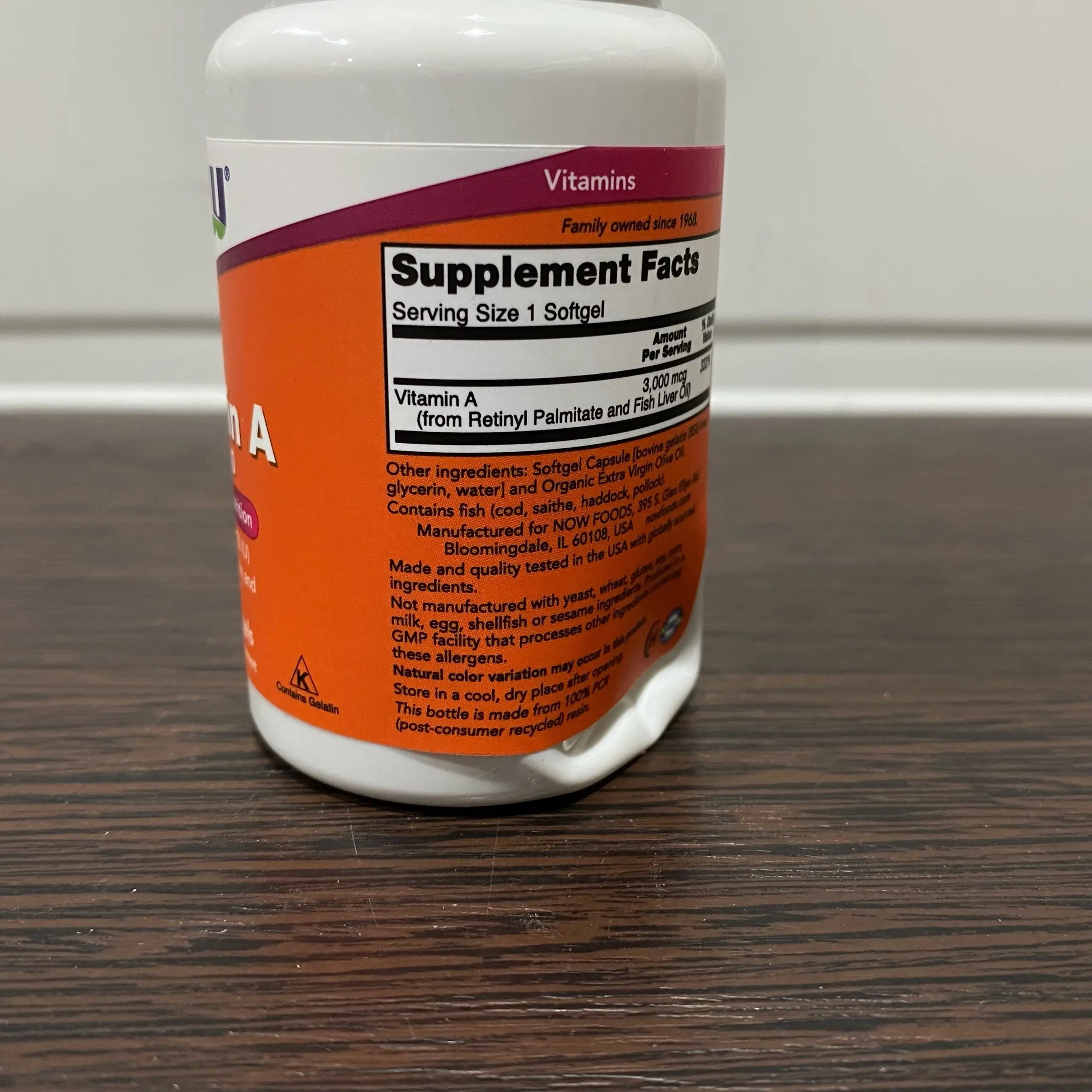 NOW Vitamin A 10000IU 100 Sgels (вмятина снизу, 12/26)