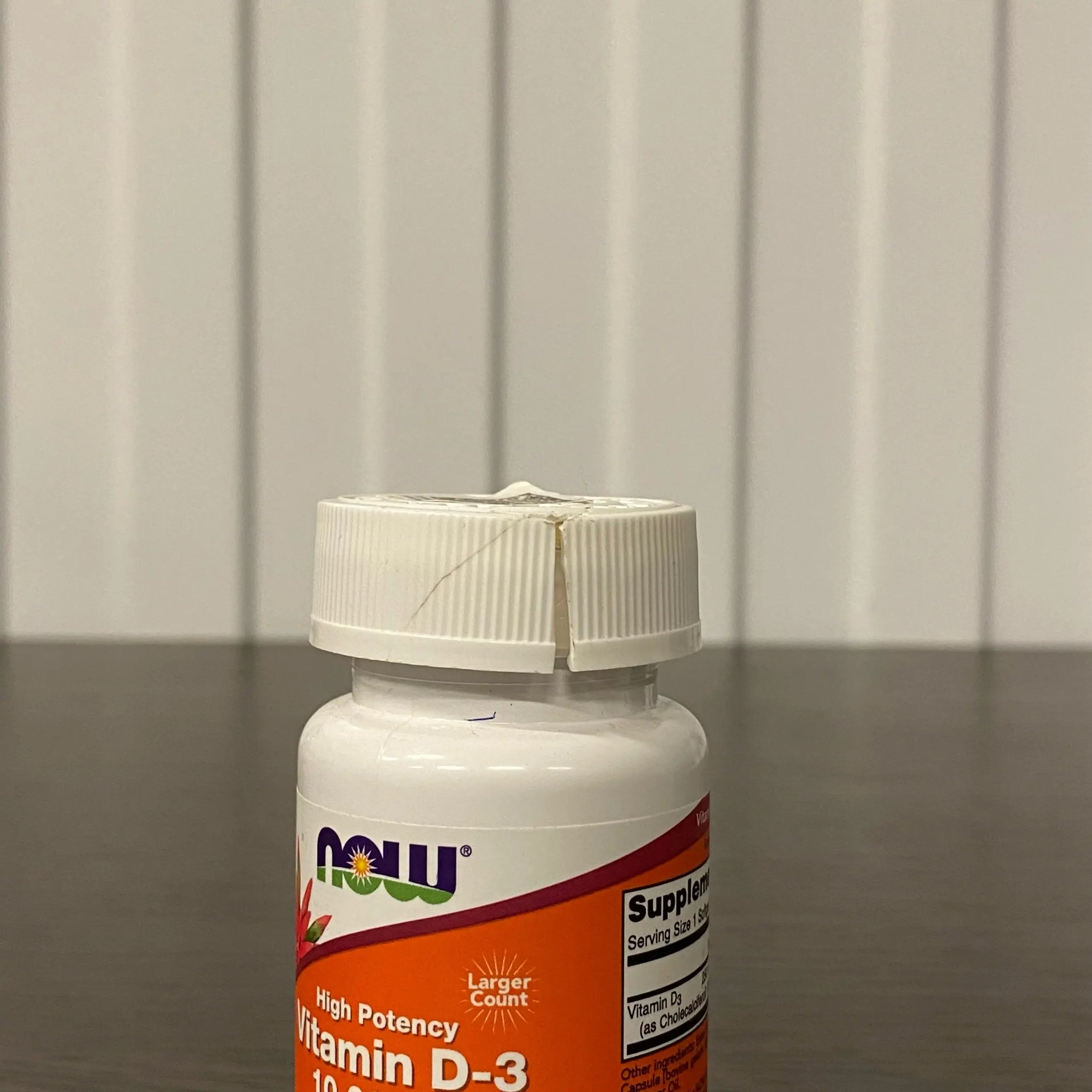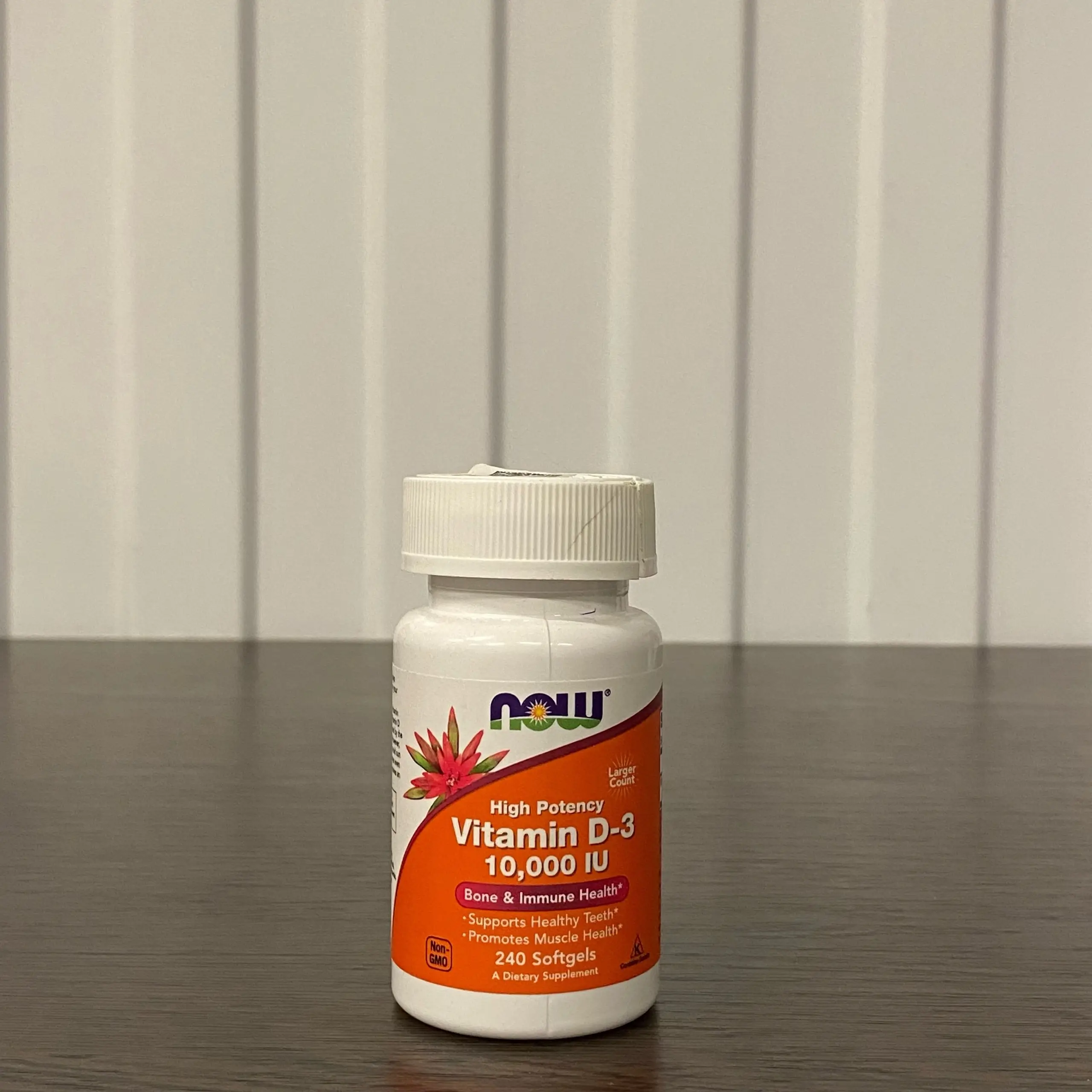 NOW Vitamin D-3 10 000IU 240 Softgels (надколота крышка, вскрытый, 07/26)