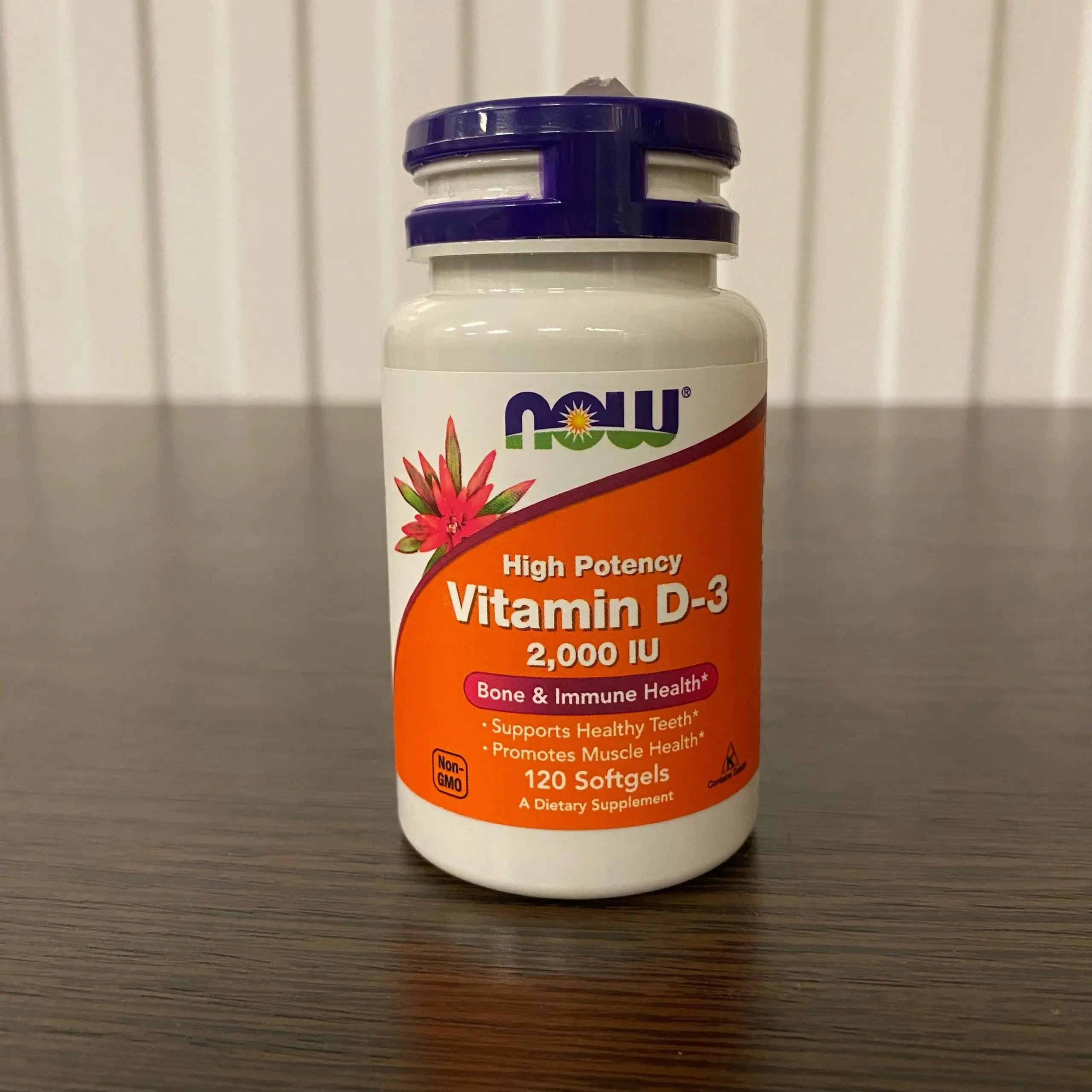 NOW Vitamin D-3 2000IU 120 Softgels (вскрытая, 11/27)