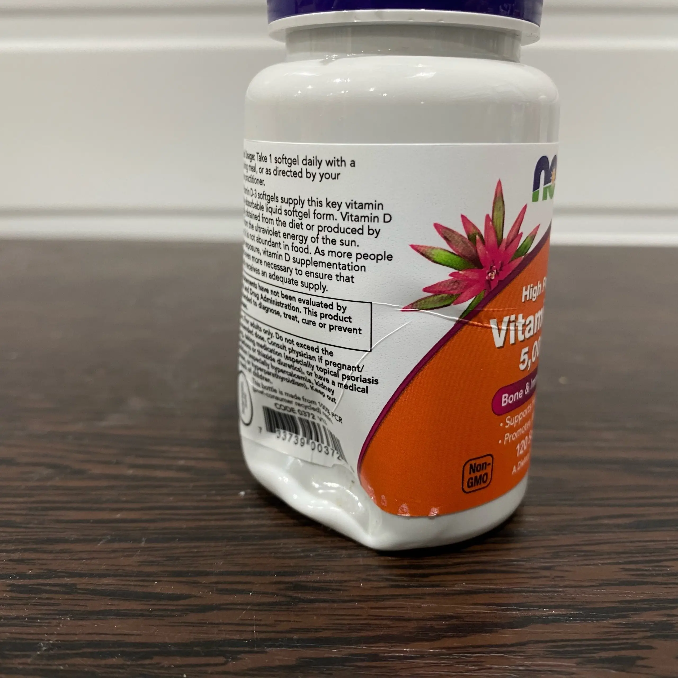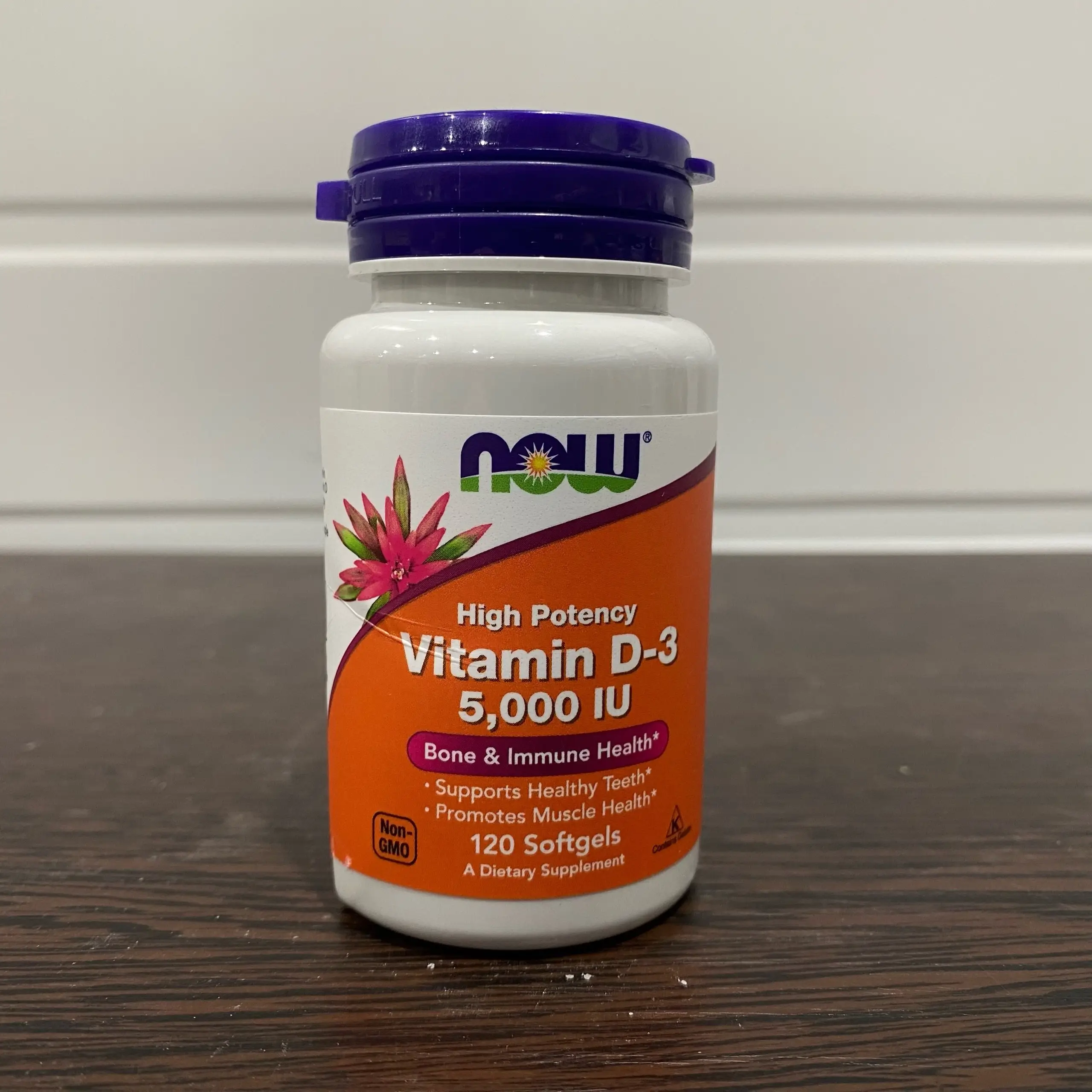 NOW Vitamin D-3 5000IU 120 Sgels (вмятина снизу, 02/29)