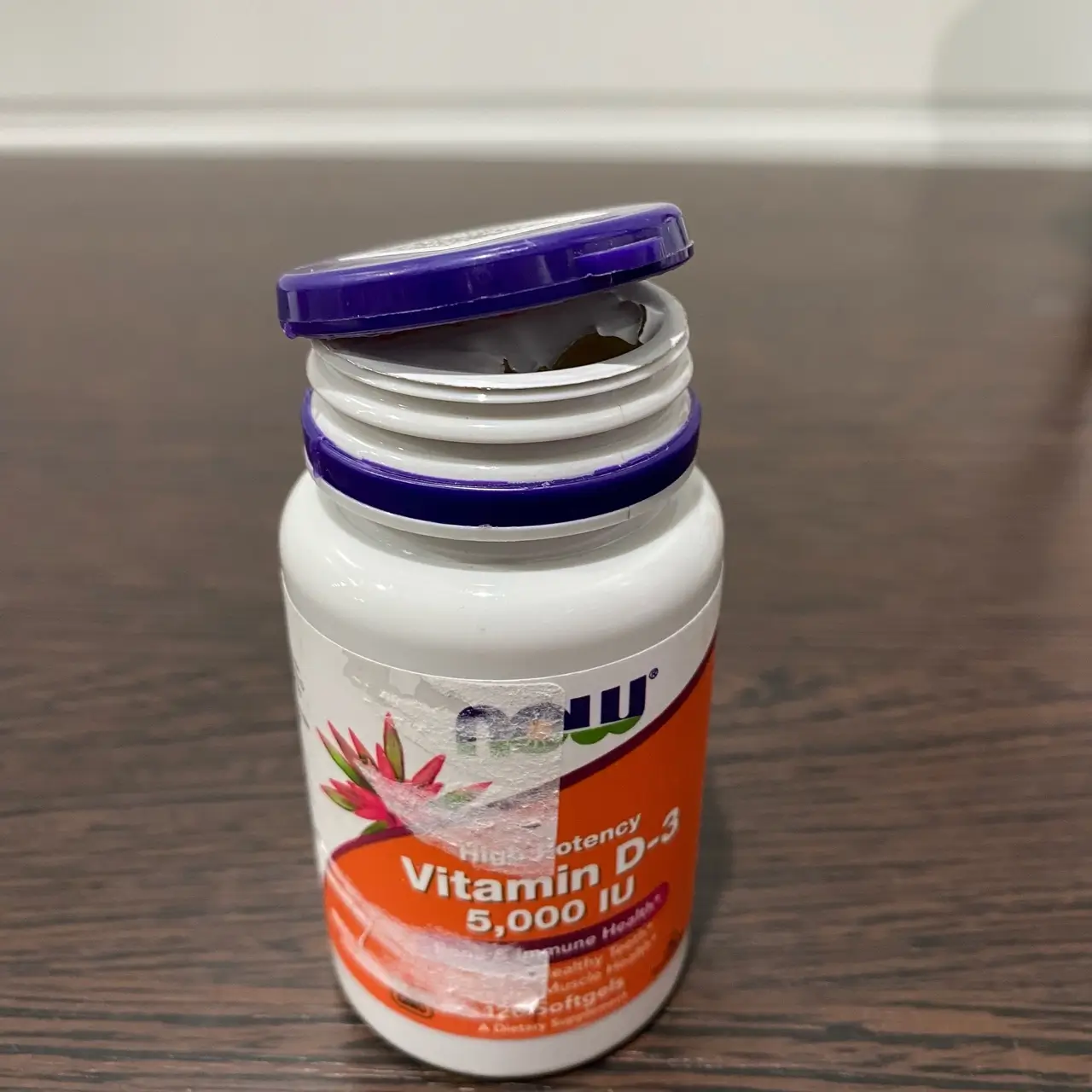 NOW Vitamin D-3 5000IU 120 Softgels (след от второй этикетки, вскрытый 10/27)