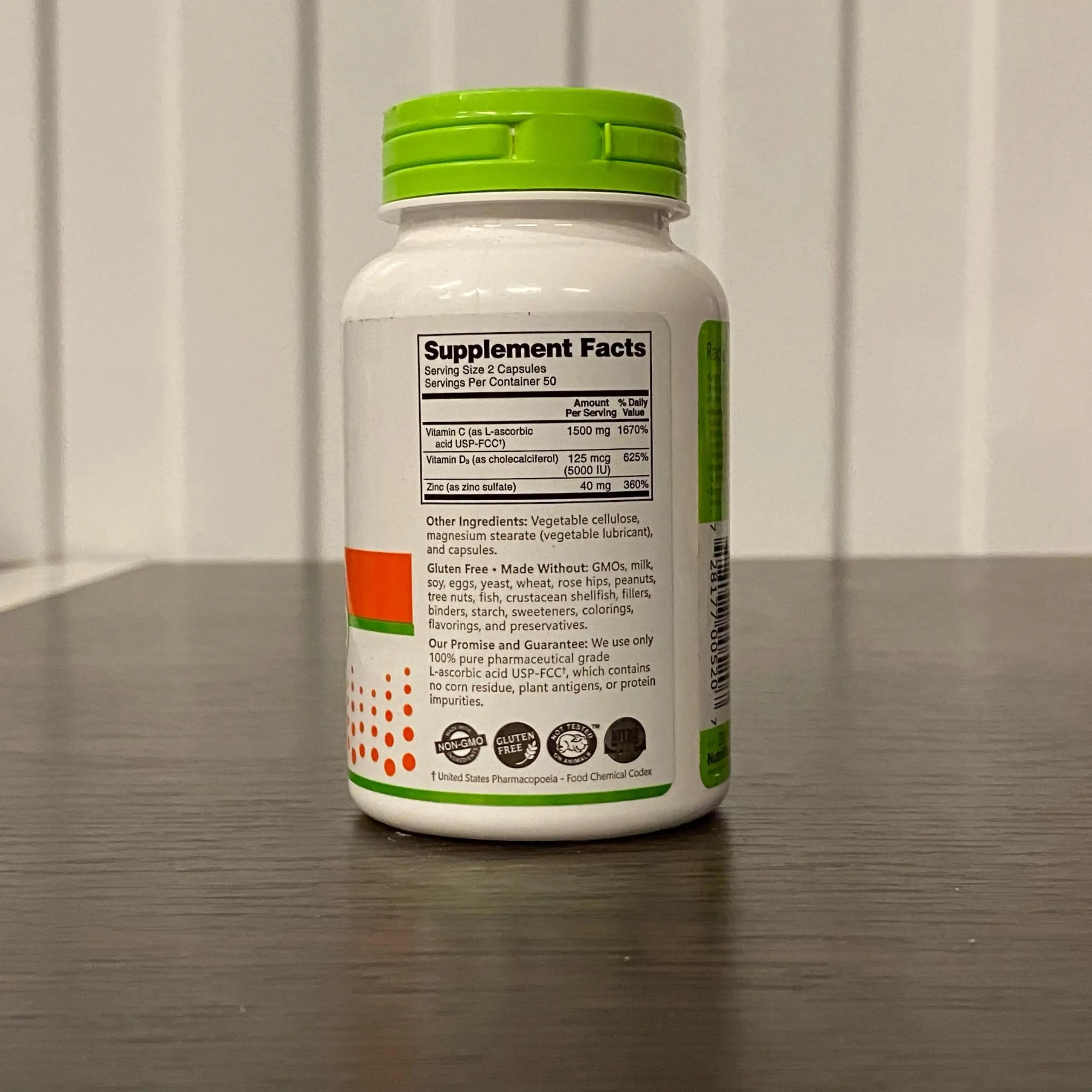NUTRIBIOTIC Immunity Vitamin C+D3 & Zinc 100 Caps (подходящий срок, 02/25)