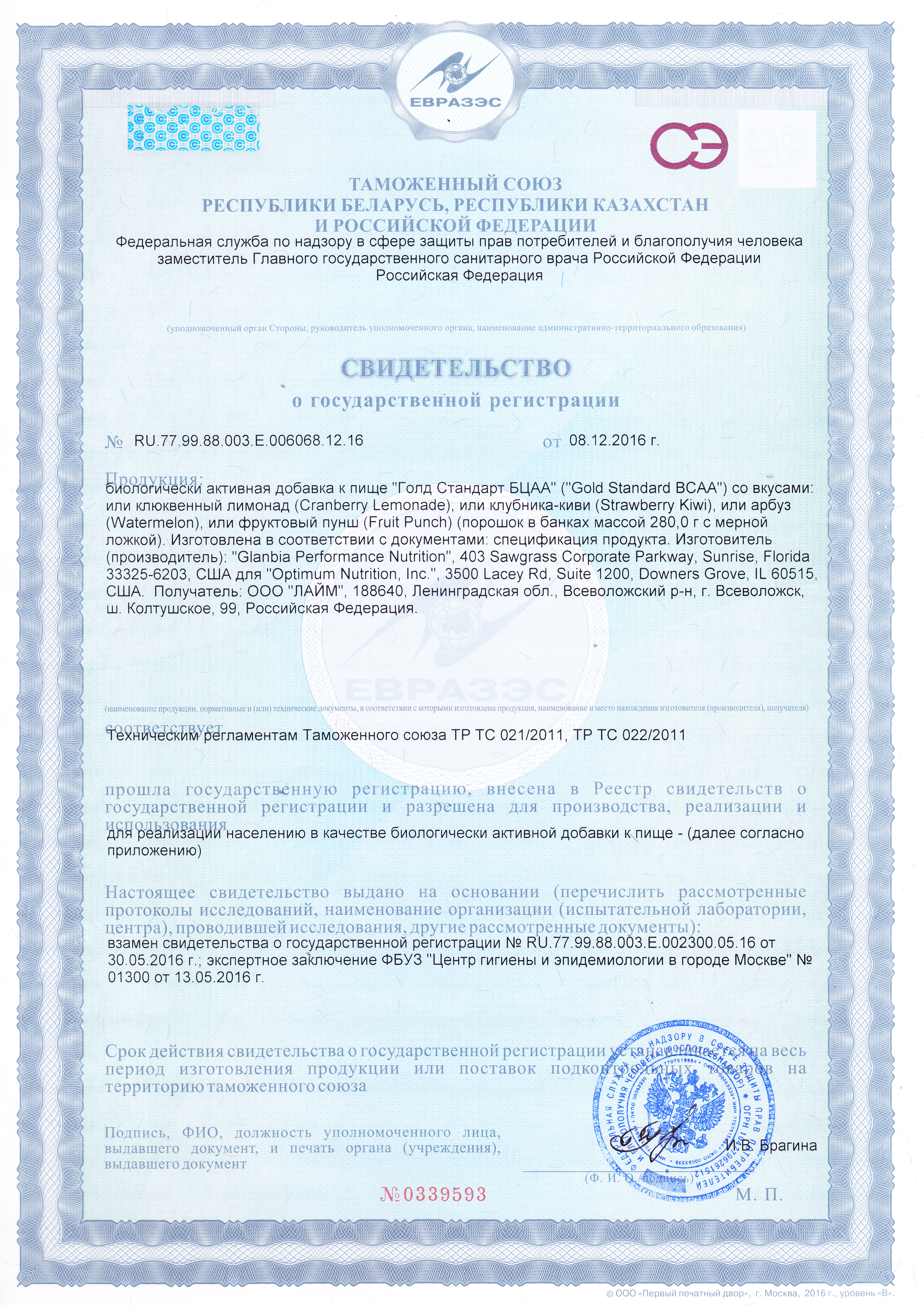 «Золотой стандарт» выстроен на БЦАА и включает смесь из 5 гр амино, проводящий перестройку организма для максимальной продуктивности при интенсивных нагрузках. В составе Gold Standard BCAA присутствуют электролиты с антиоксидантами и витамином С, а также другие ингредиенты для поддержания в процессе силового тренинга. Формула содержит: