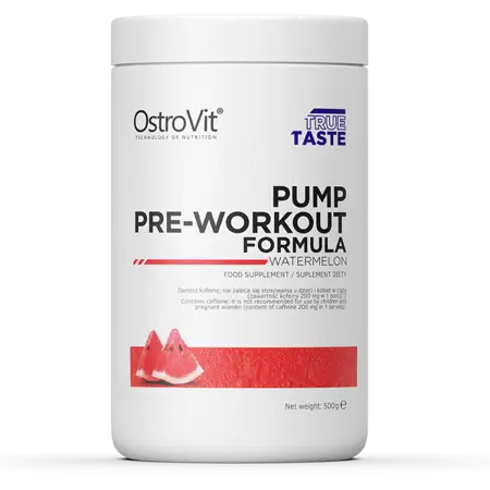 OstroVit PUMP Pre-Workout Formula - является препаратом, который способствует эффективности тренировок, а также значительно увеличивает эффекты спортсменов. Продукт представляет собой смесь бета-аланина, аргинина, цитруллина, таурина, лейцина, L-карнитина, L-тирозина, благодаря чему он является отличным препаратом, поддерживающим построение мышечной массы тела. Действие применение продукта можно заметить уже на первой тренировки, мышцы вскоре после приема продукты становятся твердыми и раздутыми. Специально созданная формула позволяет производить оксида азота (NO), который отвечает за скорость связи между клетками, расслабления стенок сосудов и подавляет скопления тромбоцитов. Благодаря содержанию бета-аланина усилия могут быть более интенсивными и длительными. Кроме того, организм менее подвержен усталости. Продукт не содержит креатин, поэтому он может быть использован также в переходный период между креатиновыми циклами. Кроме того, это отличное дополнение к синтезу мышечных волокон без ненужного удержания подкожной воды, благодаря чему эффект от упражнений становится еще более заметным.