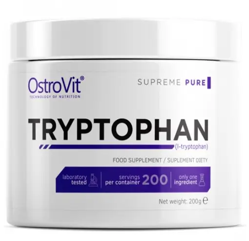 OstroVit Tryptophan (Supreme Pure) - дополнение, основанное на содержании только одного вещества L-триптофана. Высокая биодоступность, превосходная растворимость и высокий уровень фармацевтической микронизации. Продукт был создан для самых требовательных потребителей. Триптофан является органическим химическим соединением из группы незаменимых аминокислот. Наш организм не может его синтезировать. Чтобы обеспечить его надлежащий уровень в организме, он должен быть снабжен пищей или на пути добавления. Он является предшественником серотонина, нейротрансмиттера, необходимого для регулирования аппетита, сна, настроения или боли. Он также ответственен за свертывание тромбоцитов. Триптофан - естественное успокаивающее средство.