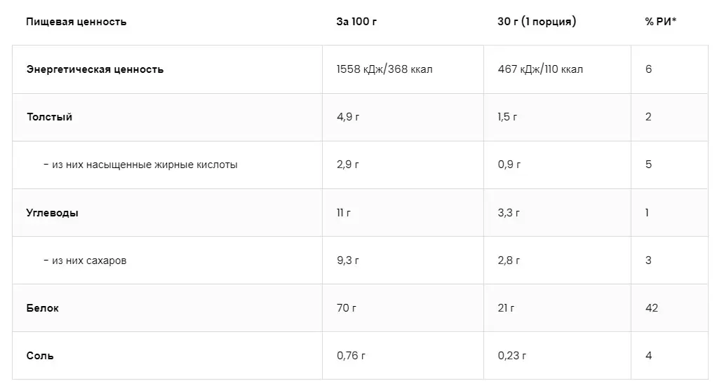 1 порцию 30 г (около 2,5 мерных ложек) растворить в 200 мл обезжиренного молока или воды. Принимайте 1–2 раза в день в зависимости от ваших потребностей.