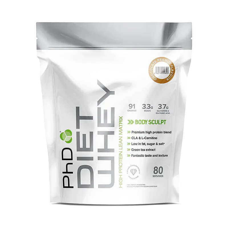 В состав Diet Whey входит комплекс высококачественного протеина PhD Premium Protein Blend, полученного из нескольких источников, что обеспечивает постепенное высвобождение аминокислот в крови и поддержание синтеза белка в мышцах. Кроме того, состав обогащен  компонентами, способствующими ускорению обмена веществ и уменьшению жировой ткани: конъюгированная линолевая кислота (CLA), L-карнитин и экстракт зеленого чая – а также семенами льна – натуральным источником омега-3 жирных кислот.