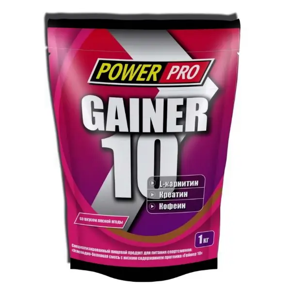 Gainer 10 от Power Pro — лучшая формула гейнера для тех, кто хочет увеличить объем мышечной массы, а не превратиться в бесформенную тушу из мяса и жира. В отличие от гейнеров большинства производителей, в гейнерах Power Pro минимальное количество жиров. Только трехкомпонетная матрица европейского протеина и натуральные чистые углеводы. Вспомогательными элементами для Ваших мышц и энергии выступают следующие компоненты: