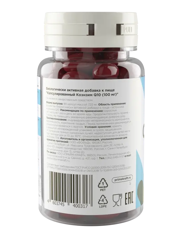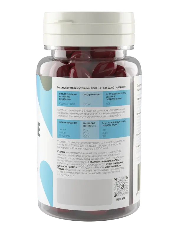 Содержание в 1 капсуле: коэнзим Q10 - 100 мг.