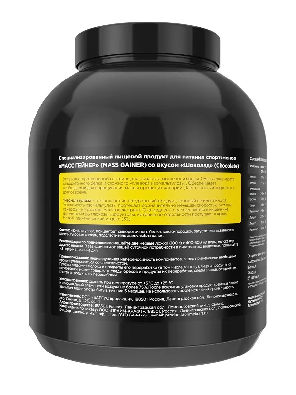 Благодаря входящим в состав продукта сложным углеводам напиток MASS GAINER является более щадящим для органов пищеварения (в отличие от гейнеров с быстрыми углеводами, на мальтодекстрине), а качественный концентрат сывороточного белка в составе обеспечивает нужным количеством аминокислот ваши мышцы в период интенсивных тренировок.