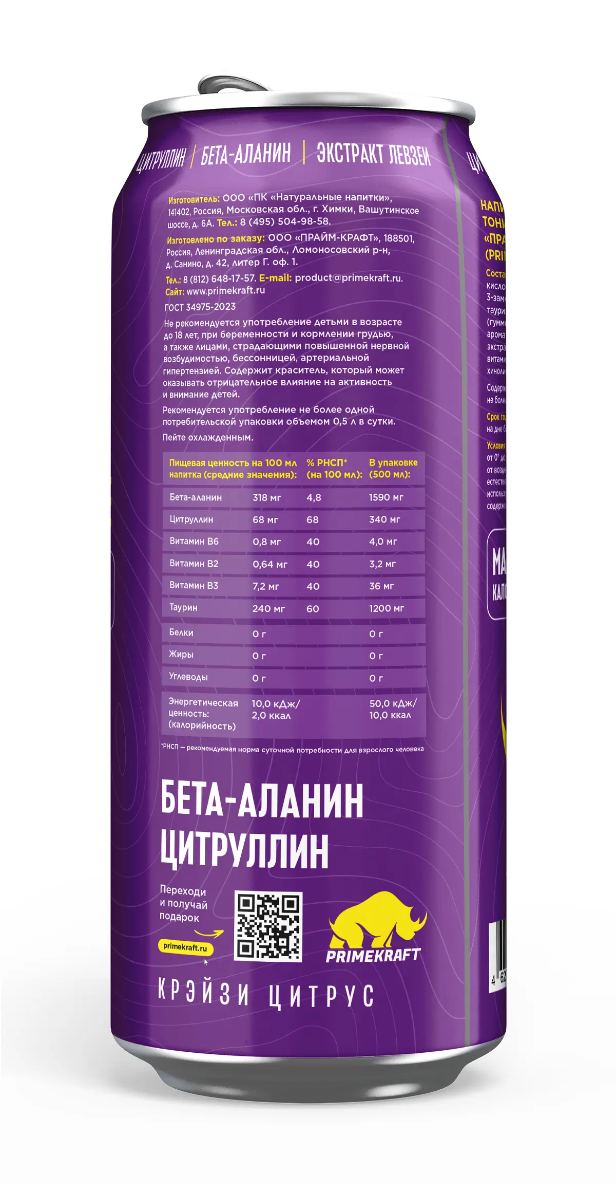 PRIME KRAFT НАПИТОК ENERGY SPORT MUSCLE 500 ml