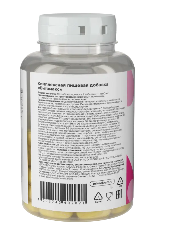 Комплекс VITAMAX применяется для активного укрепления организма в условиях высокой нагрузки – физической и эмоциональной. Повышает сопротивляемость стрессам и негативным воздействиям окружающей среды.