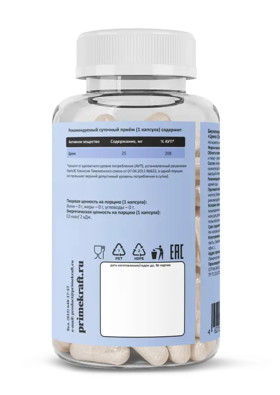 Prime Kraft Zinc 90 капсул – ваш источник цинка для здоровья и иммунитета