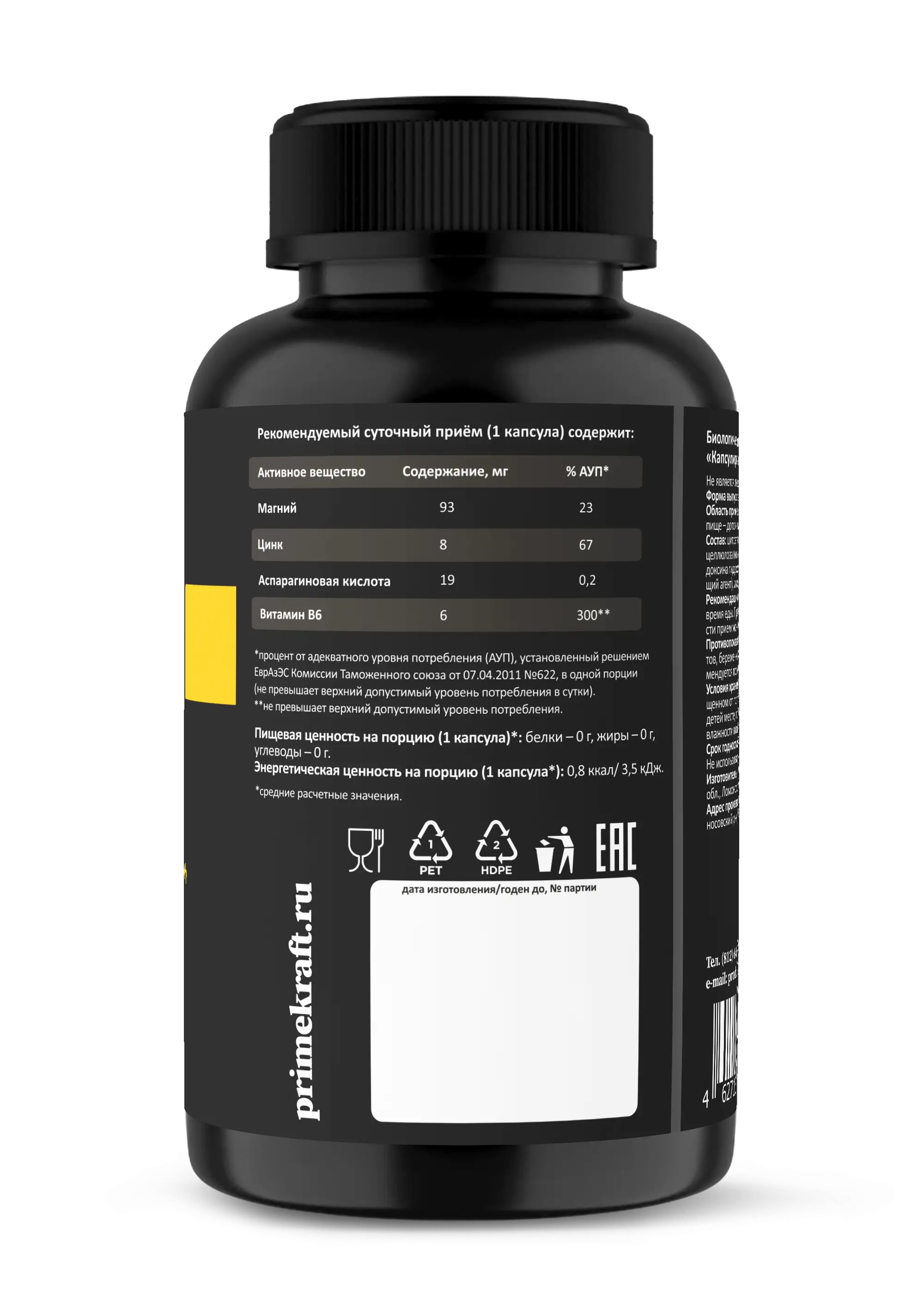 Prime Kraft (БАД) к пище "Капсулированный ЗМА» (ZMA), банка 90 капс.