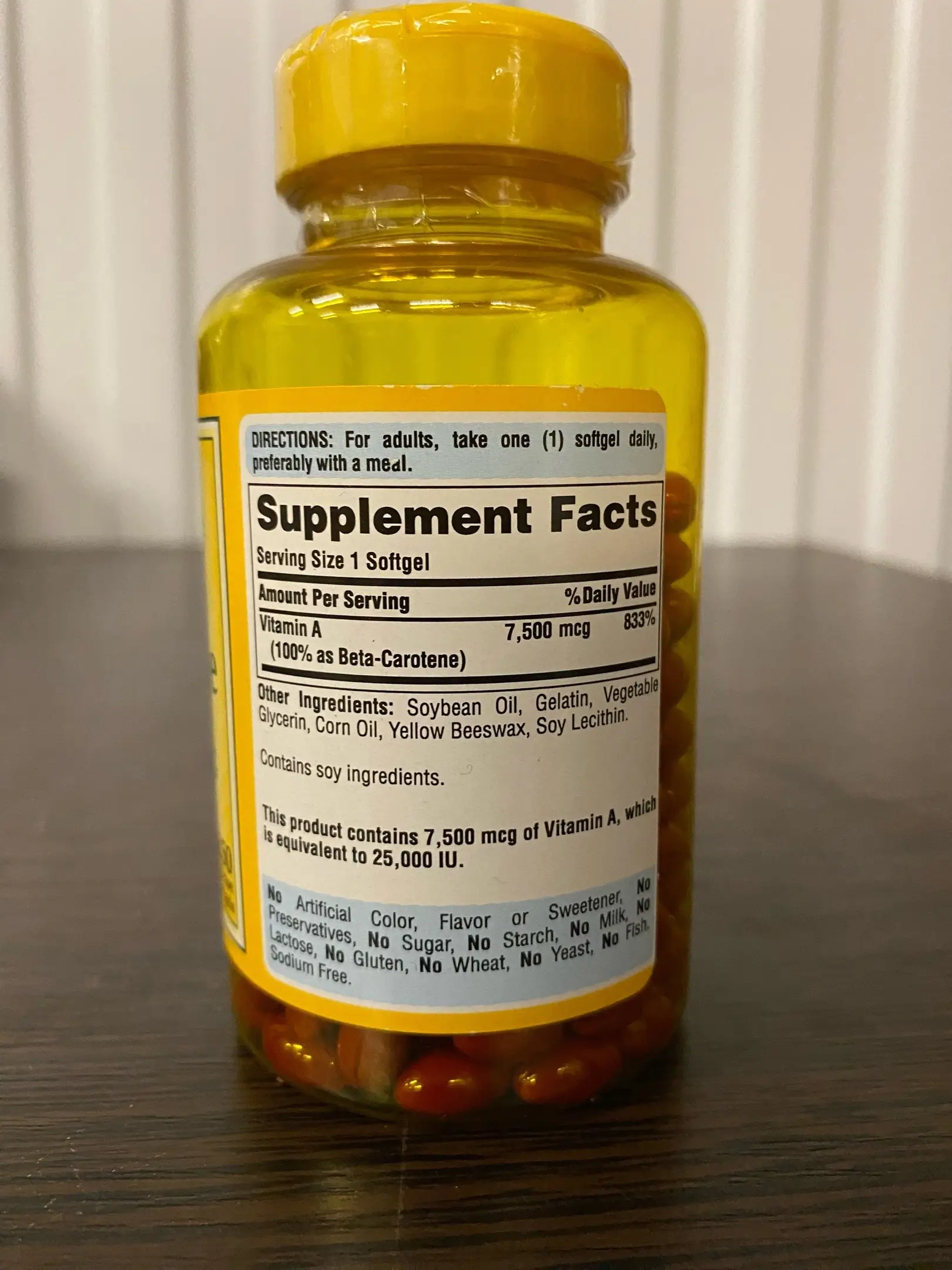 | Витамин А (100% в виде бета-каротина) (источник 25 000 МЕ витамина A) |
