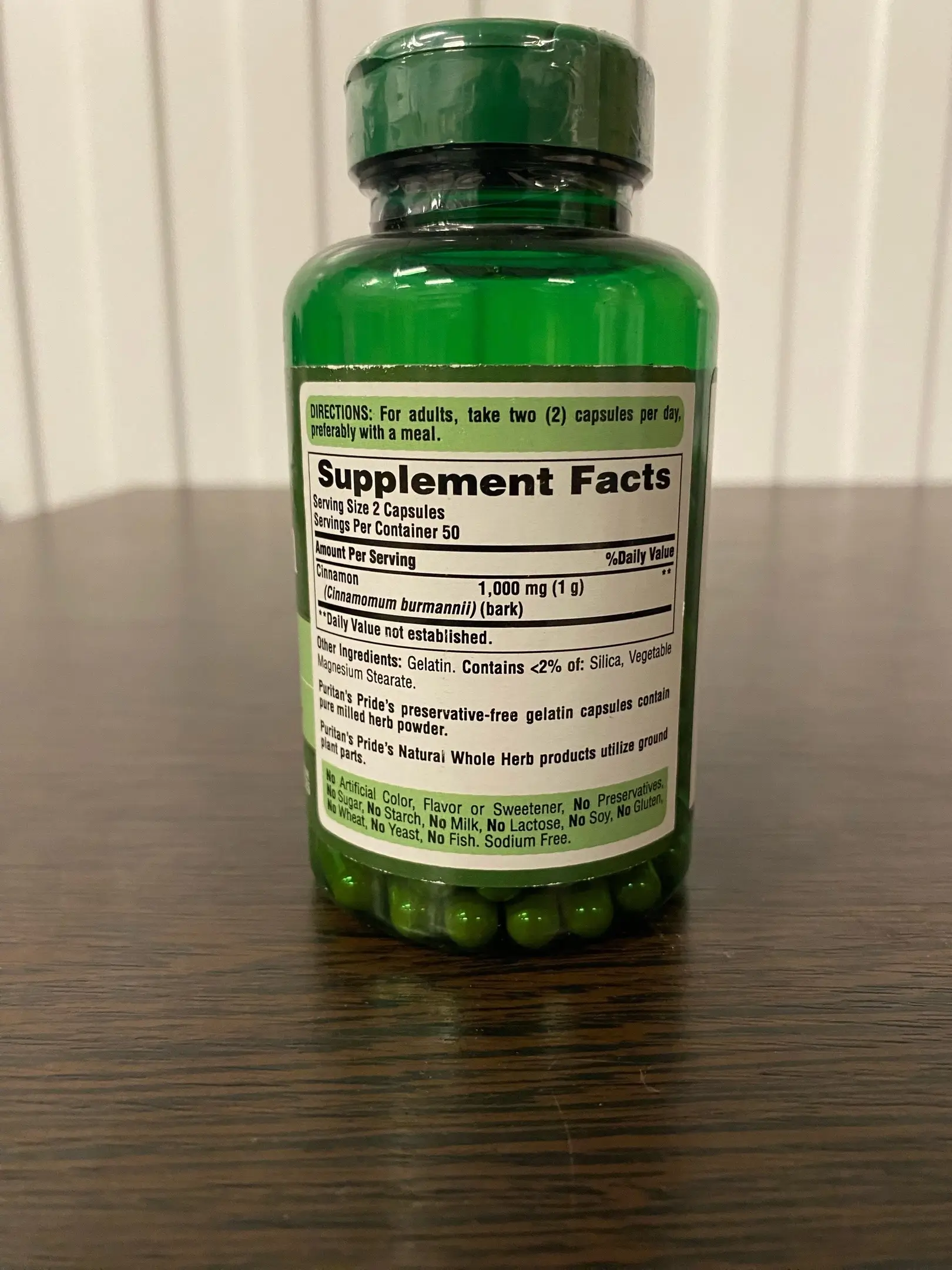 Состав 1 порции (1 капсула) Puritan`s Pride - Cinnamon: