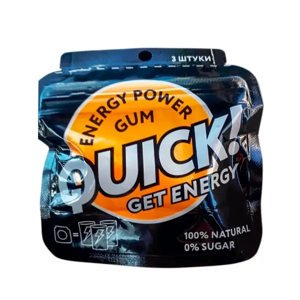 Энергетическая жевательная резинка Quick! создана на основе уникальной запатентованной технологии - порошкообразное ядро, содержащее внутри таурин, экстракт зеленого чая и кофеин.