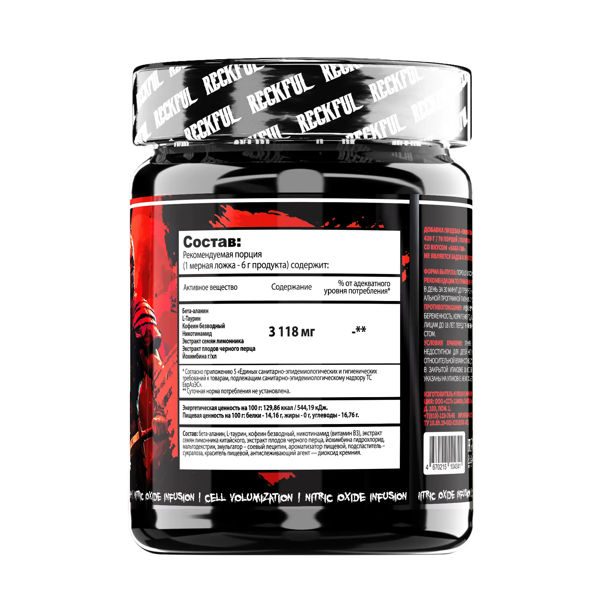Reckful ® Fury XXXL Pre-Workout 70 Serv – это суперактивный предтренировочный комплекс, созданный для тех, кто стремится к интенсивным тренировкам и максимальным результатам. Сформулирован с высокой дозой активных ингредиентов, этот комплекс обеспечит вам мощный прилив энергии, улучшит концентрацию и выносливость. Отличается долгим действием, чтобы поддерживать вашу активность на протяжении всей тренировки и помочь вам достигать новых высот.