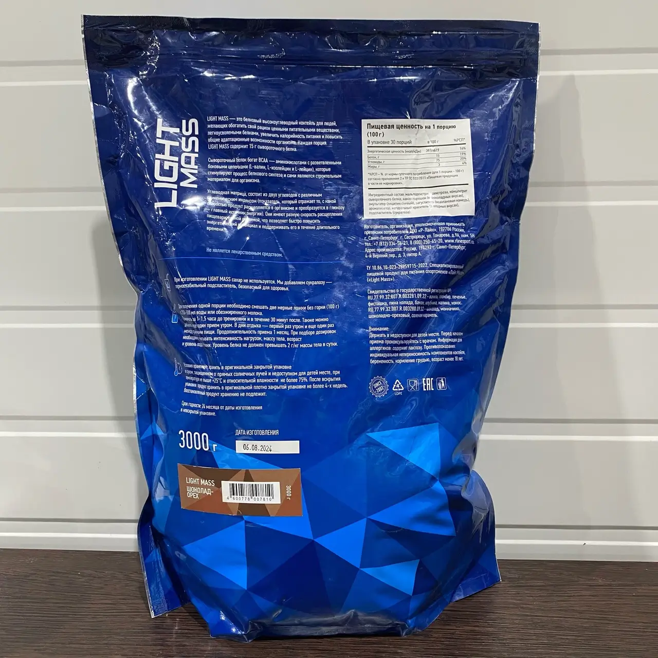 RLINE Light Mass 3000g (Шоколад-Орех) (заклеена дырка, 08/26)