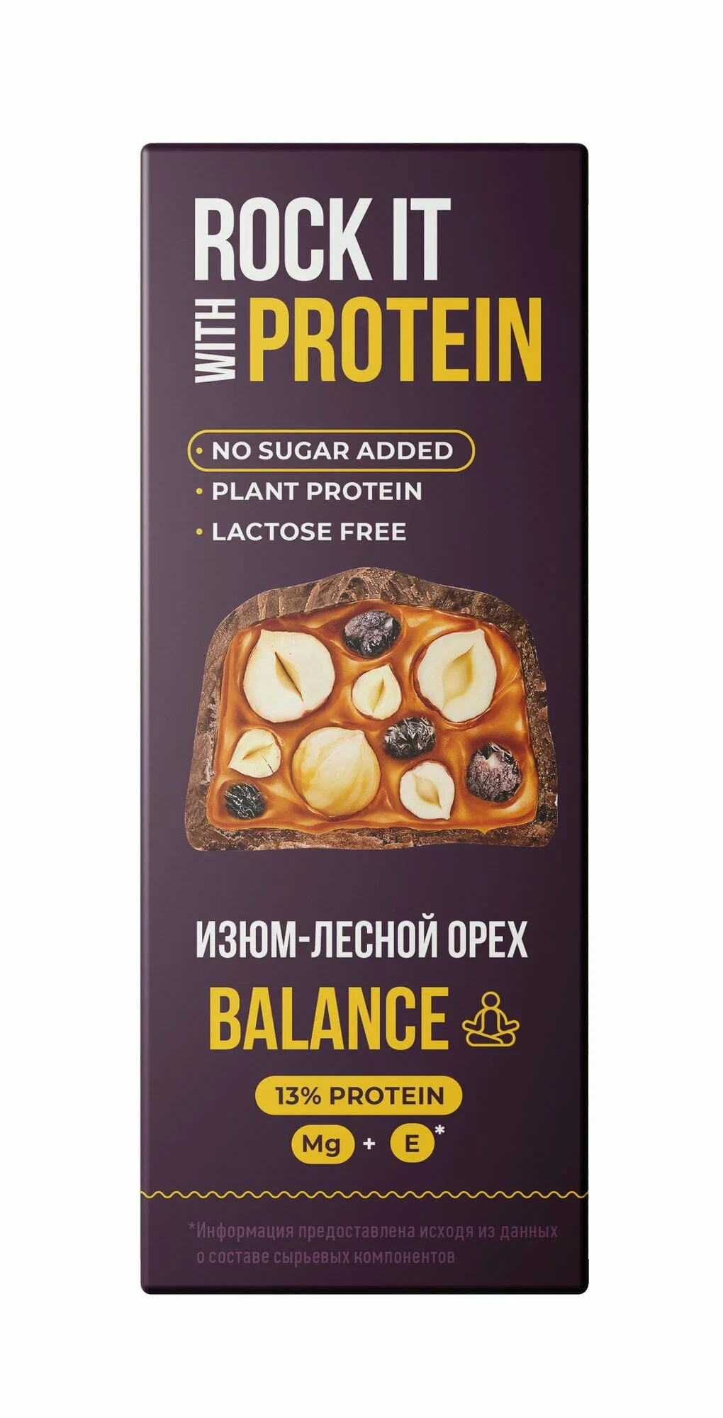- Ядра арахиса жареные, ядра грецкого ореха, солод ячменный, изюм, сироп топинамбура, протеин растительный (гороховый), какао-масло, какао тертое, ядра ореха кешью, природный пребиотик инулин, мука кокосовая.