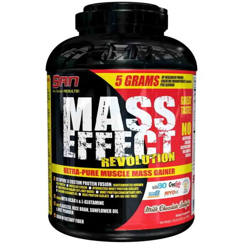 МиоКарб, в сущности, не содержащий сахара и скомбинированный из проросших рисовых отрубей и сложных углеводов, выделен из зерновых для обеспечения сверхбыстрого мышечного роста и удовлетворения калорийных потребностей спортсмена, что очень важно во время любых циклов по набору веса. МАСС ЭФФЕКТ РЕВОЛЮШН был со всех сторон досконально изучен и проверен спортсменами по всему миру, такими как вы. С МАСС ЭФФЕКТ РЕВОЛЮШН Вы можете быть уверены, что получаете один из самых эффективных передовых гейнеров на сегодняшнем рынке. 3) МАСС ЭФФЕКТ РЕВОЛЮШН содержит не менее 5 грамм креатина моногидрата [марки КреаСолв – CreaSolv], с добавлением L-Глутамина и полезного для мышц подсолнечного масла на каждую 299 граммовую порцию.