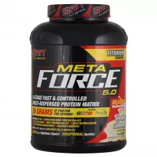 Meta Force 5.0 от SAN - это 6-ступенчатая быстрая и контролируемая мульти-дисперсная протеиновая матрица, состоящая из: SPI-90, гидролизованного изолята сывороточного протеина, микрофильтрованного концентрата сывороточного протеина, мицеллярного Альфа и Бета казеинатов, обратно-денатурированного холодной фильтрацией изолята сывороточного протеина, молочного протеина и казеината кальция.