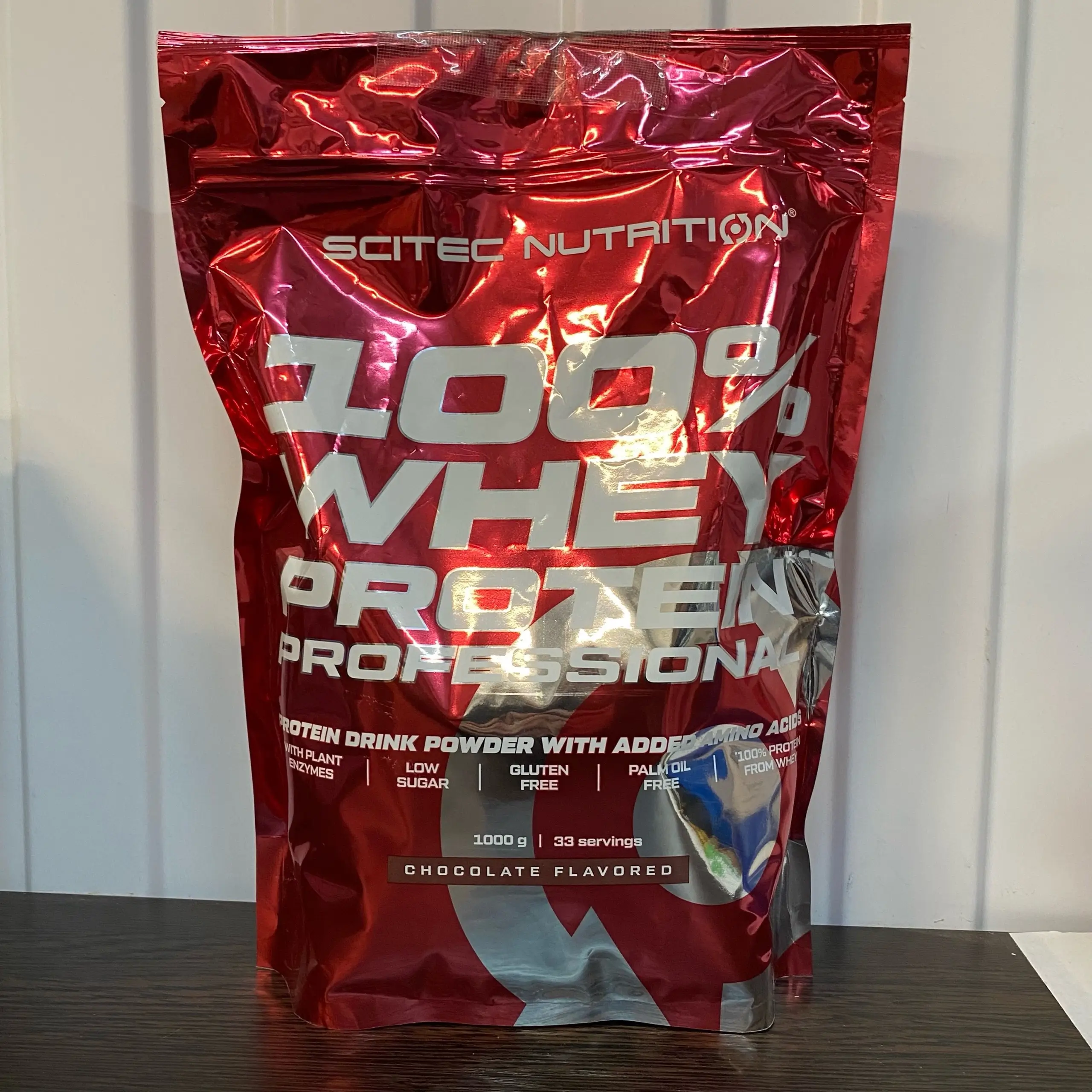 SCITEC NUTRITION 100% Whey Protein Proffesional 1000g (Chocolate) (заклеена дырка, 03/27)
