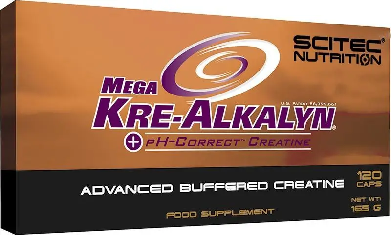 Mega Kre-Alkalyn Scitec Nutrition – креатин в капсулах, который имеет кислотный уровень pH больше 12-ти, а это в свою очередь дает ему одно очень большое преимущество, которое заключается в том, что он практически не подвергается воздействию кислот ЖКТ и попадает в мышцы в том количестве, в котором употреблялся.