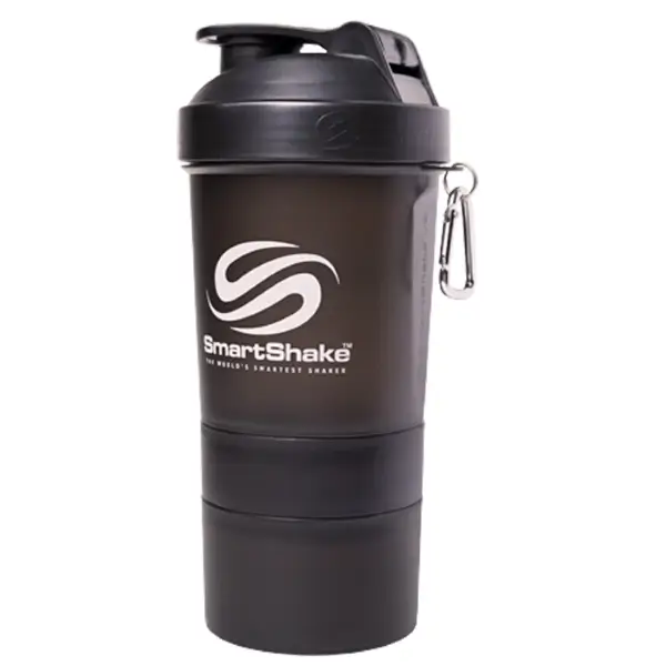 Шейкер SmartShake – это практичный выбор практичного спортсмена. Шейкер сделан из нетоксичного пластика и абсолютно безопасен в использовании. Революционная конструкция шейкера решает проблему транспортировки спортивных добавок. Теперь вам не нужны различные пакетики, бутылочки и кейсы. Снаружи шейкер имеет карабин для ключей или других предметов.