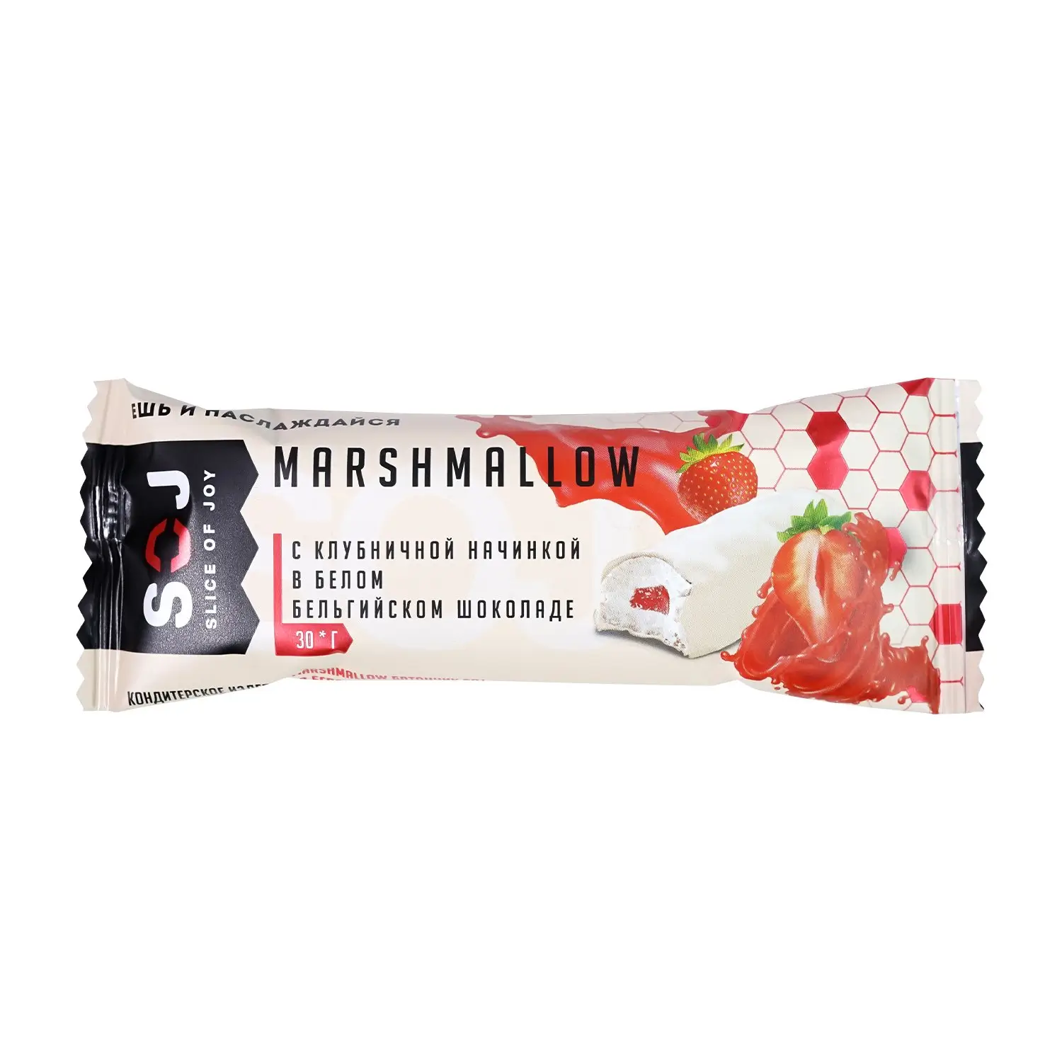 Эксклюзивный продукт на рынке, не имеющий аналогов! MARSHMALLOW батончик – это нежное суфле, покрытое белым шоколадом, с начинкой из натуральной клубники. Настоящее лакомство для сладкоежек.
