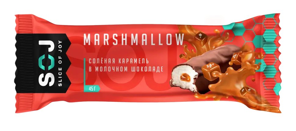 Эксклюзивный продукт на рынке, не имеющий аналогов! MARSHMALLOW батончик – это нежное суфле, покрытое темным Бельгийским шоколадом, с начинкой из соленой карамели. Настоящее лакомство для сладкоежек.