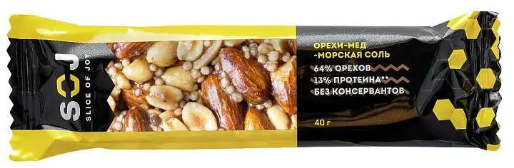 SOJ Ореховый батончик с медом "ОРЕХИ-МЕД-МОРСКАЯ СОЛЬ" 40 г